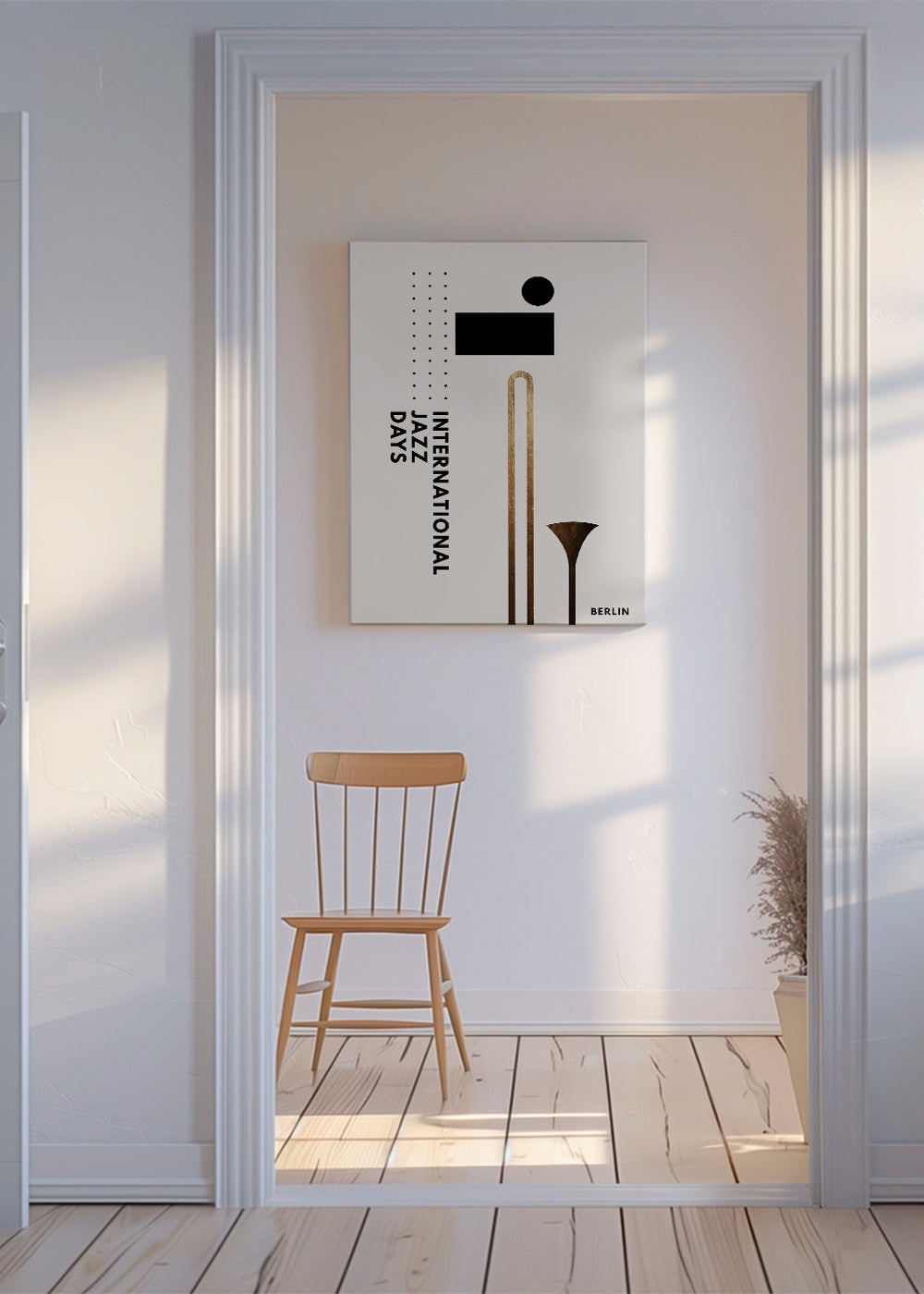Una opera dal nostro set di quadri di jazz, della collezione dell'artista Kubistika, con dei tocchi dorati, e nel formato verticale. Quest'opera con motivi astratti è ideale da abbinare a quadri geometrici e di arte astratta. Lascia che l'arte riempia la tua casa.