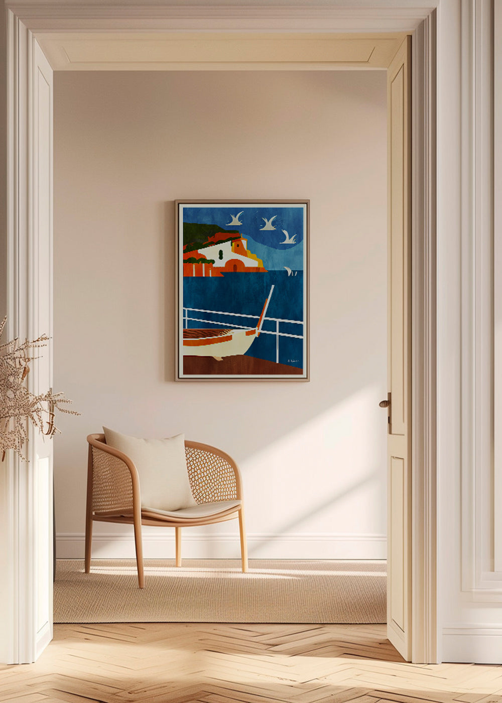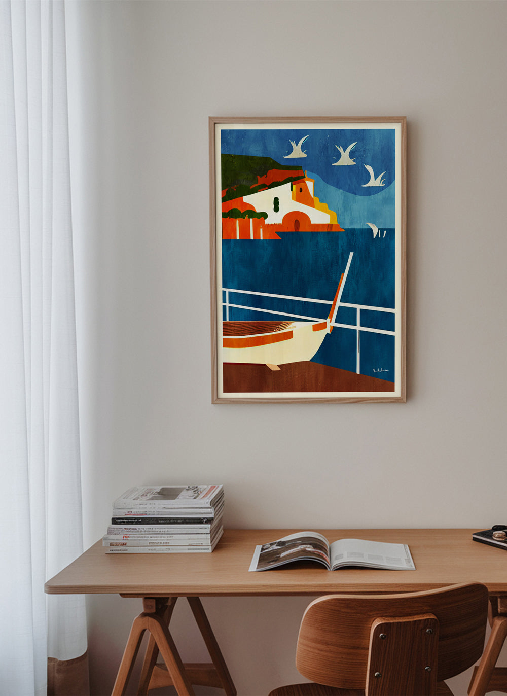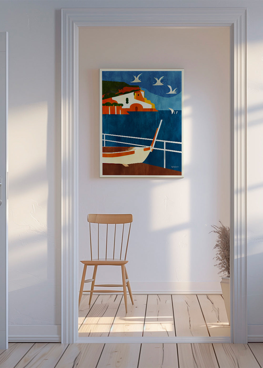 Una stampa della serie di quadri vintage e stampe retrò , realizzata da Bo Anderson, con sfumature dai colori blu, e con posizione verticale. Un poster retrò che puoi abbinare ad altri poster in stile vintage per dare un tocco di originalità alla tua abitazione. Una parete spoglia è priva di carattere, ma con qualche quadro le daremo personalità.