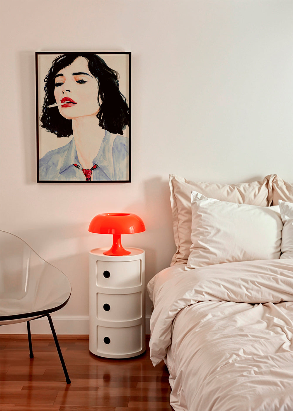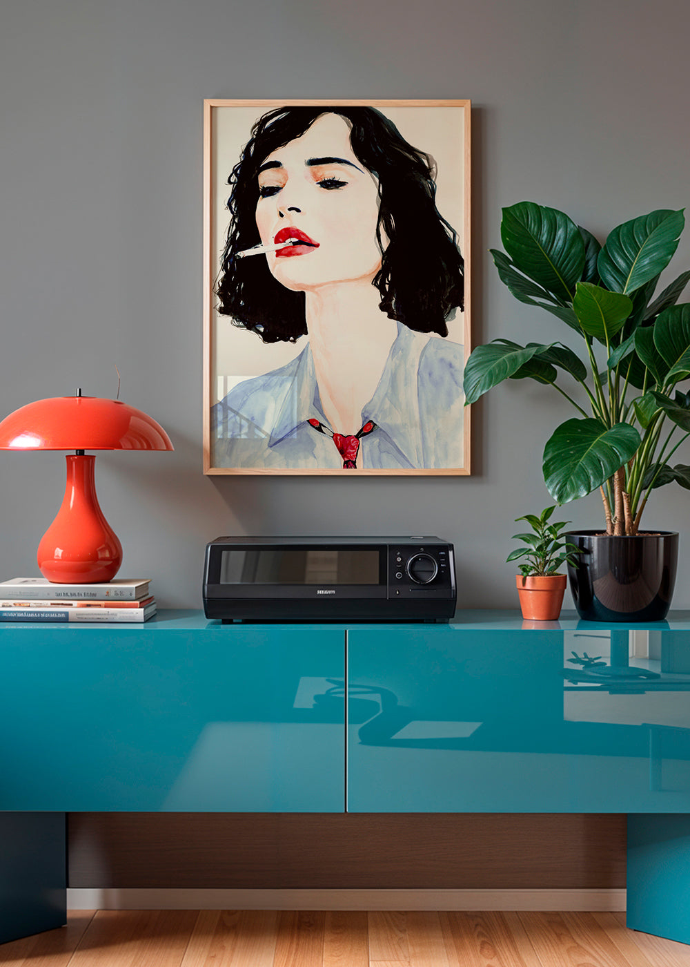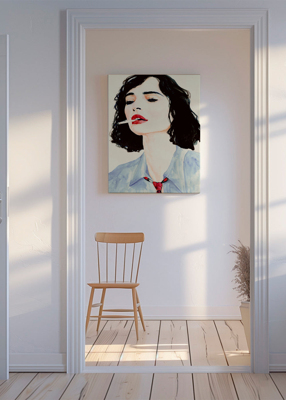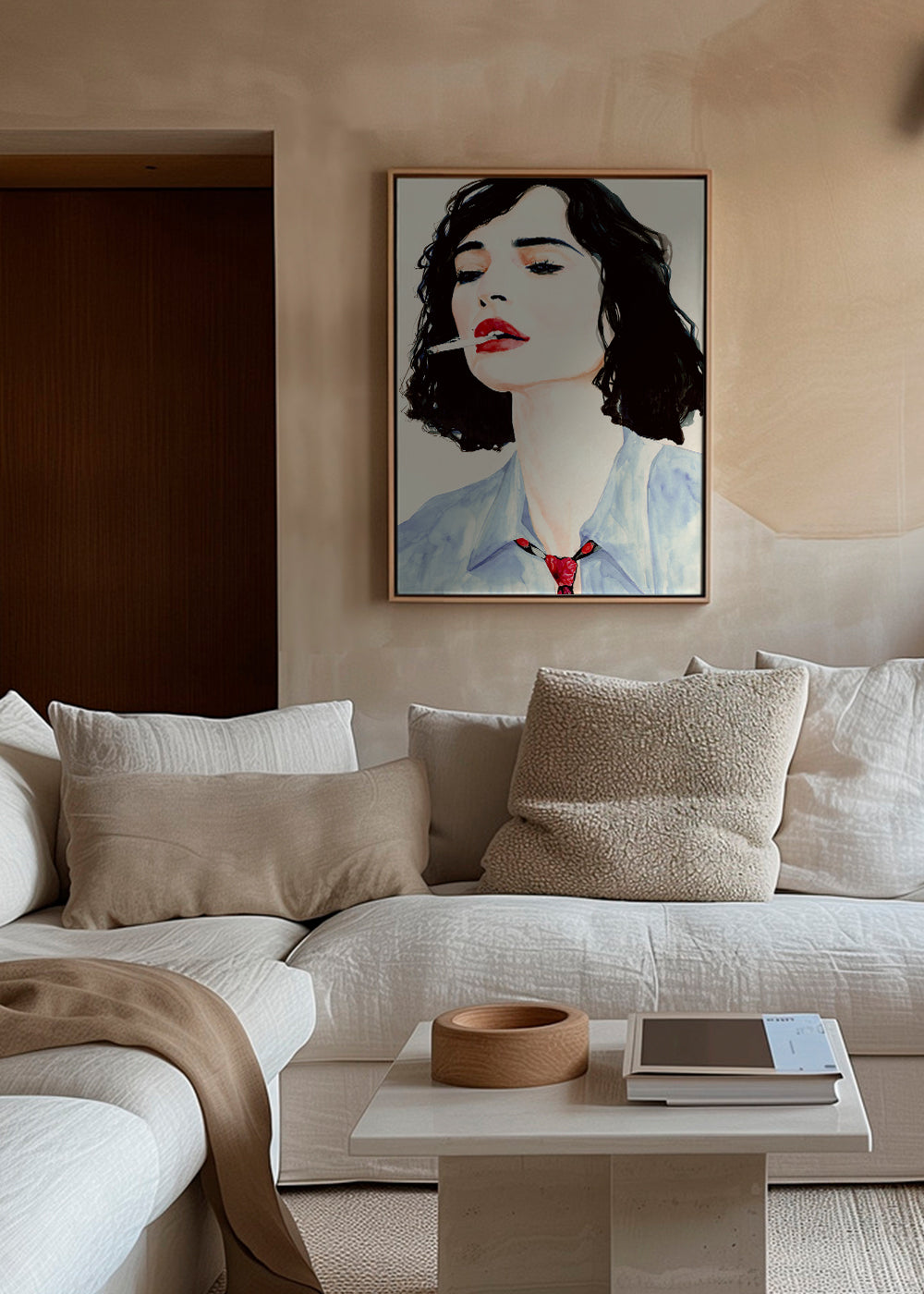 Questa pieza della collezione quadri di donne, della collezione dell'artista Sophia Novosel, con pigmenti rossi, e con posizione verticale. Le stampe con illustrazioni sono ideali per personalizzare le pareti in modo creativo. Una parete spoglia è priva di carattere, ma con qualche quadro le daremo personalità.