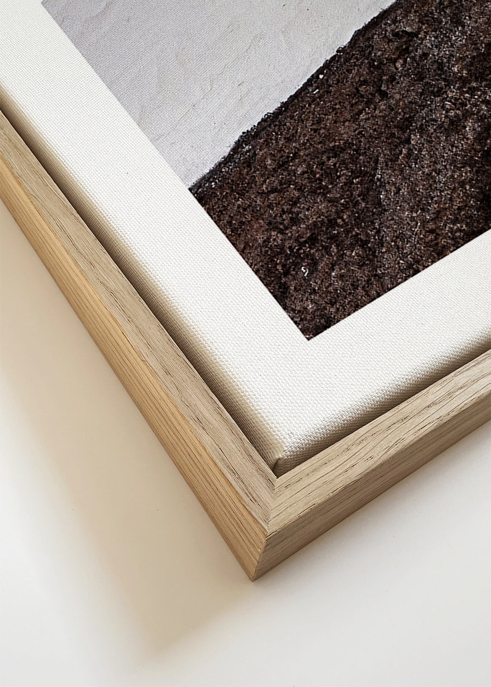 Se selezioni l'opzione passepartout, aggiungeremo la scatola di cartone bianca alla cornice e ridurremo il design dell'opera. Ad esempio, se selezioni un foglio di formato 50x70, con cornice e passepartout color rovere, ridurremo il disegno del foglio al formato precedente (40x50cm). In questo modo si adatterà perfettamente alla finestra interna del passepartout.