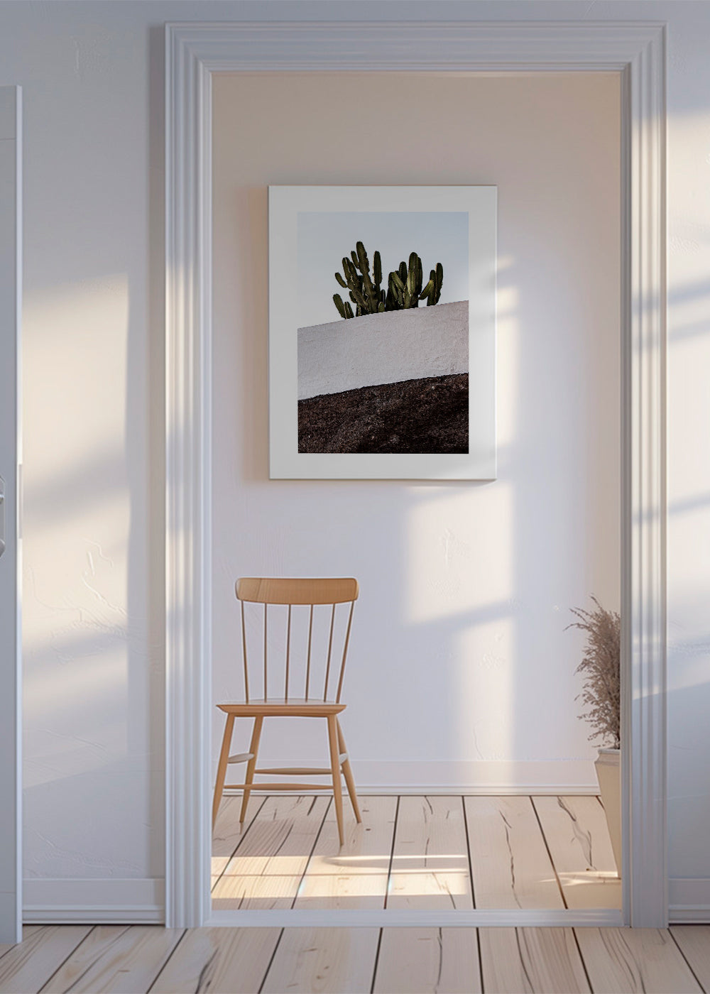 Questa stampa appartenente alla categoria di quadri con cactus, realizzata da Ferran Feixas, sui toni verdi, e da appendere in posizione verticale. La fotografia è una forma d'arte che dà un tocco in più a qualunque stile di home decor. Grazie ai quadri con foto renderai più moderno l'interior design di ogni ambiente. Realizza un home decor dal design ricco di stile e creatività. L'immagine include un margine bianco che fa da contrasto all'opera e la valorizza.