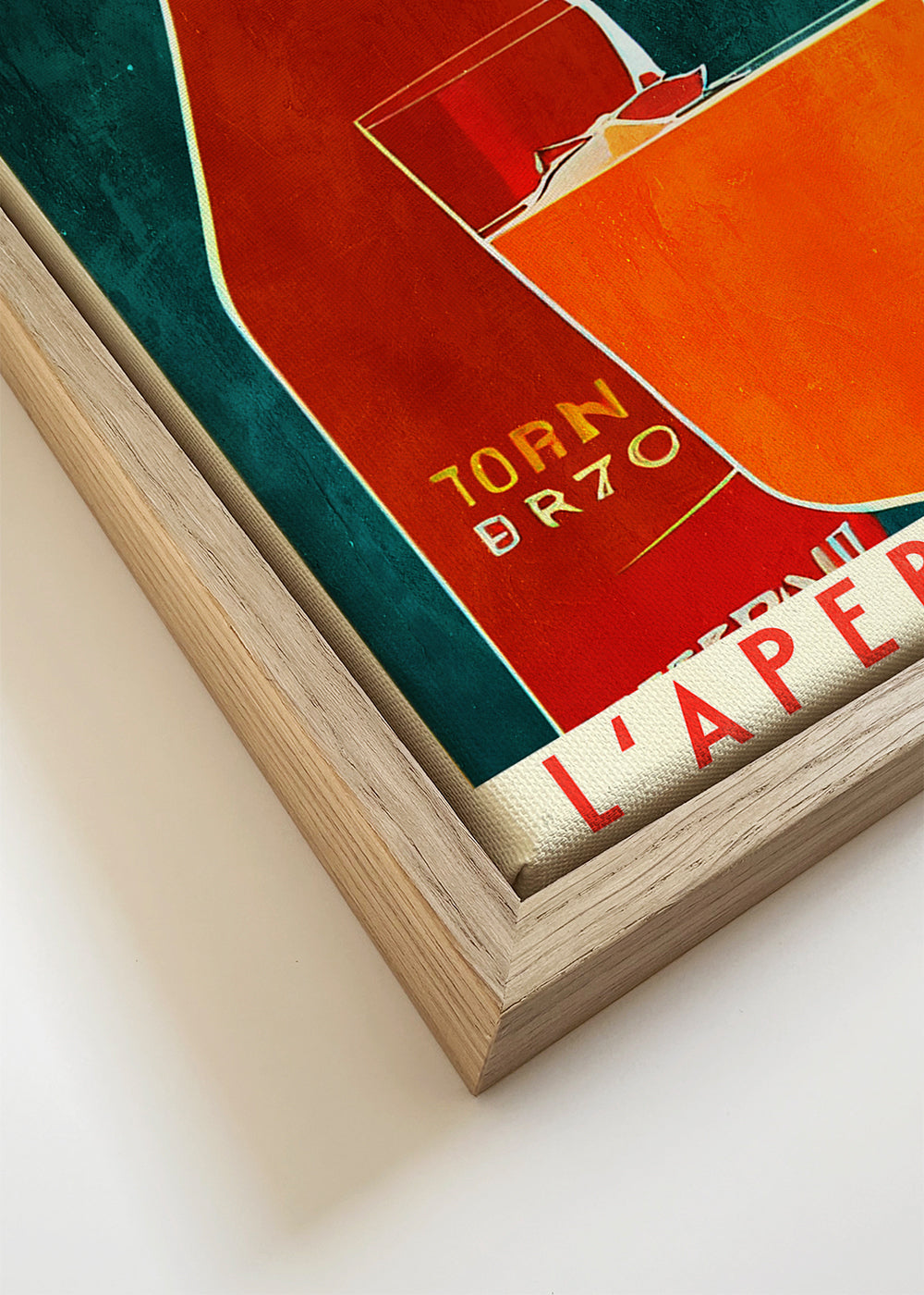 Per evitare rotture, le nostre cornici incorporano vetro acrilico al posto del vetro. Il vetro acrilico riproduce l'effetto del vetro, ma evita possibili danni durante il trasporto o il posizionamento della cornice.