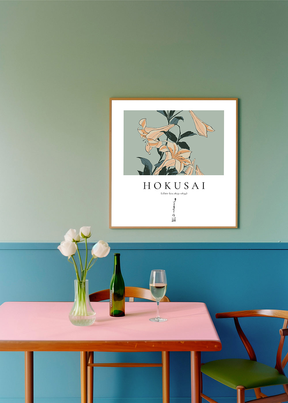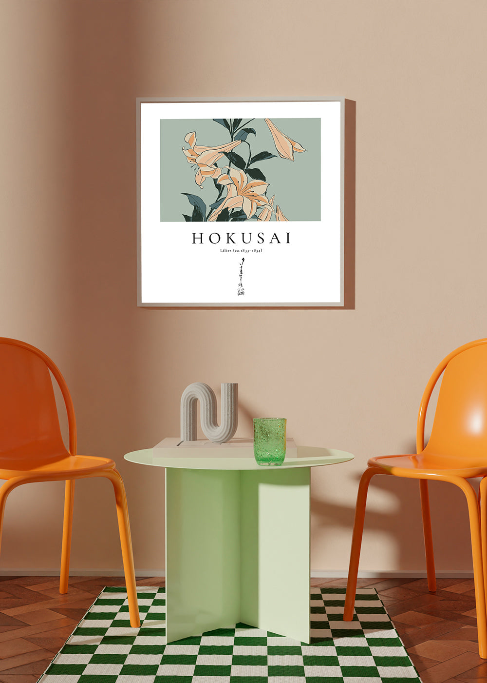 Quadro in stile nordico lilies by Katsushika Hokusai - Square