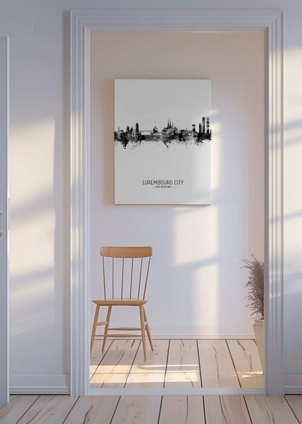 Quadro in stile nordico Luxembourg City Skyline blanco y negro