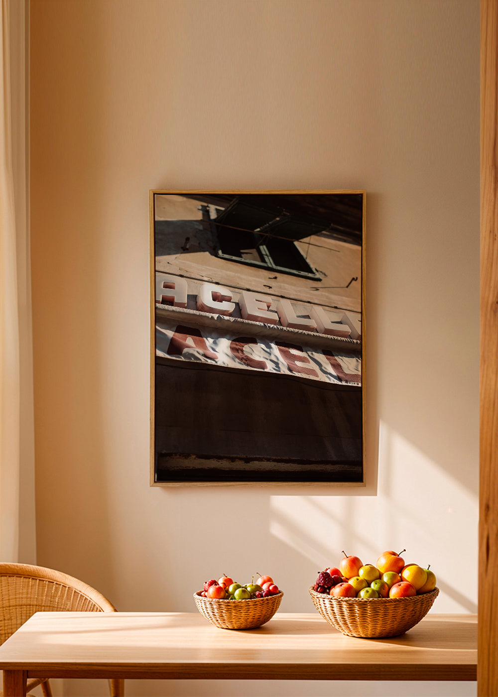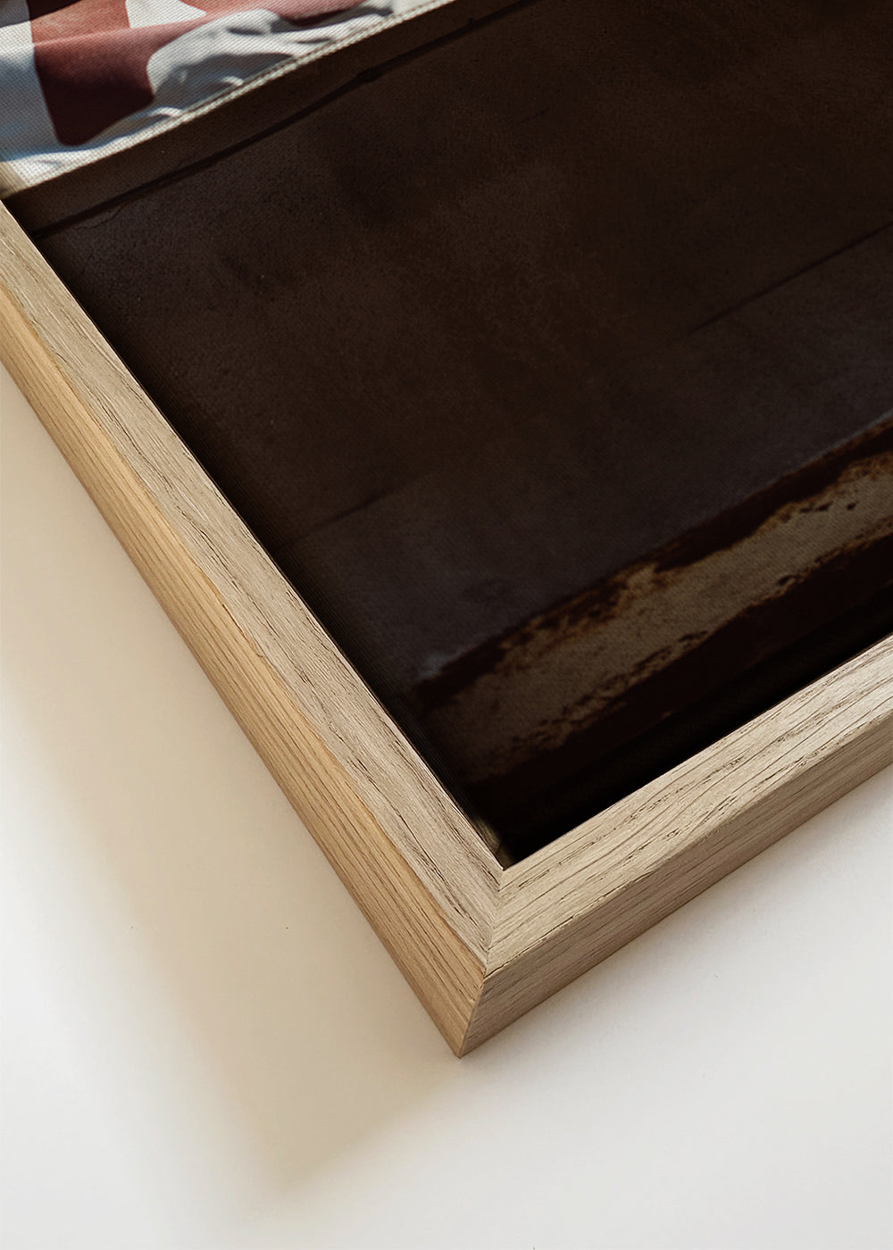 Per evitare rotture, le nostre cornici incorporano vetro acrilico al posto del vetro. Il vetro acrilico riproduce l'effetto del vetro, ma evita possibili danni durante il trasporto o il posizionamento della cornice.