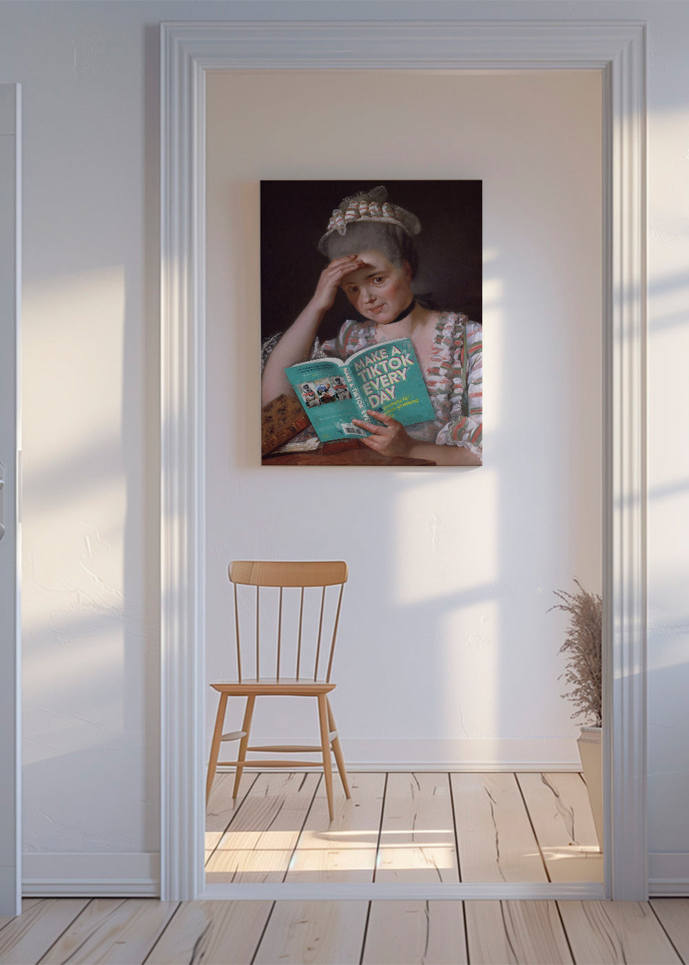 Bello quadro della collezione quadri divertenti, dell'artista Dikhotomy, sui toni blu, e con orientamento verticale. Si tratta di un'illustrazione semplice e pulita, che puoi abbinare ad altre illustrazioni per realizzare una composizione artistica. Eleganza ispirata all'arte.