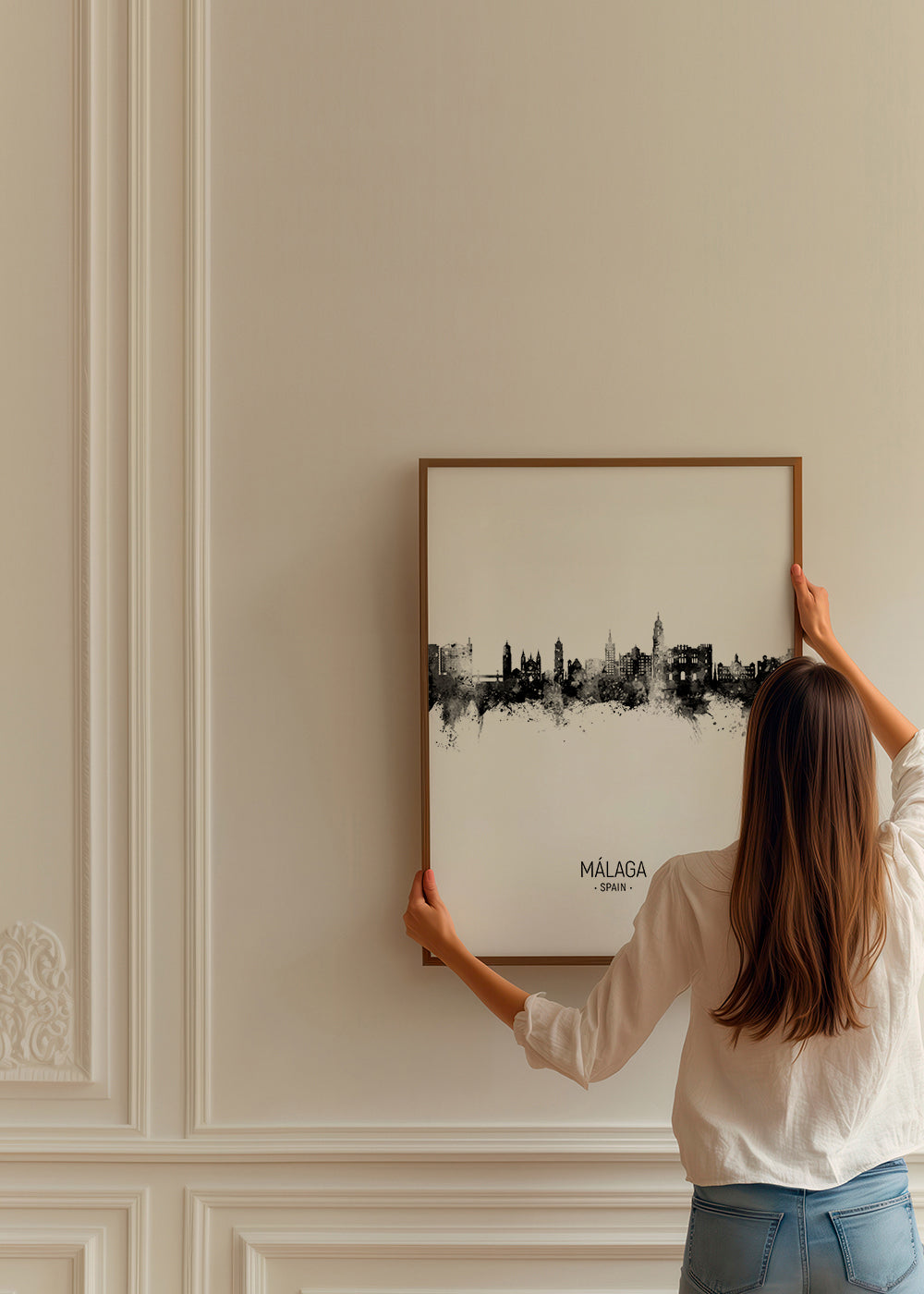 Quadro in stile nordico Málaga Skyline blanco y negro