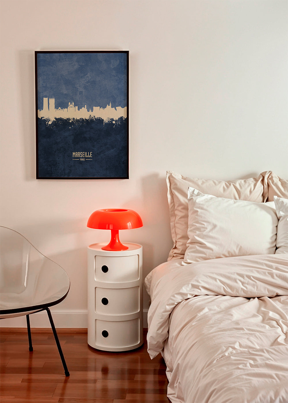 Un design della nostra categoria di quadri con skyline, della collezione dell'artista Michael Tompsett, sui toni blu, e con posizione verticale. Un quadro perfetto per i viaggiatori incalliti. Abbinalo ai nostri quadri di carte e città. Realizza piccoli angoli ricchi di arte.