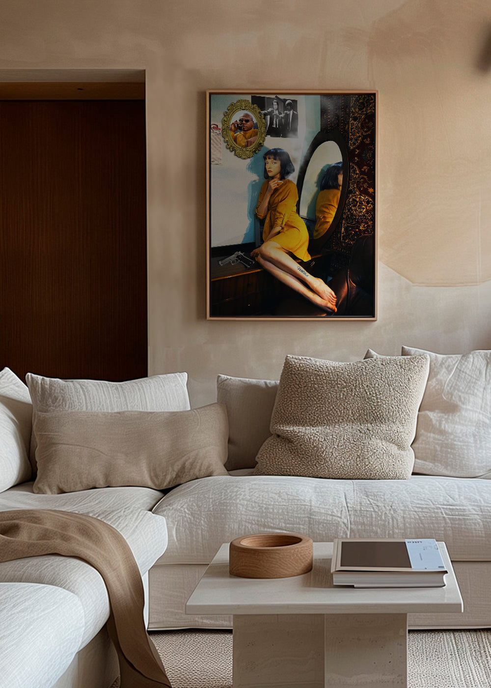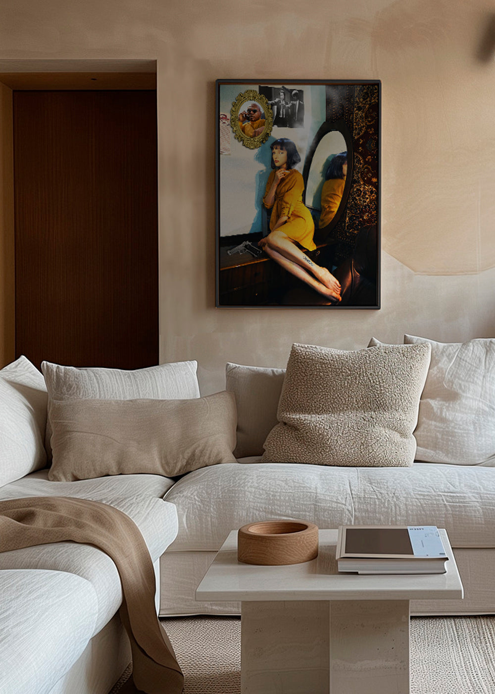 Un poster dal nostro repertorio di quadri di donne, realizzata da Dikhotomy, sui toni gialli, e con posizione verticale. L'home decor scandinavo non passa di moda e questa è un'opera ideale per ambienti arredati in stile nordico. Costruisci il tuo angolo preferito.