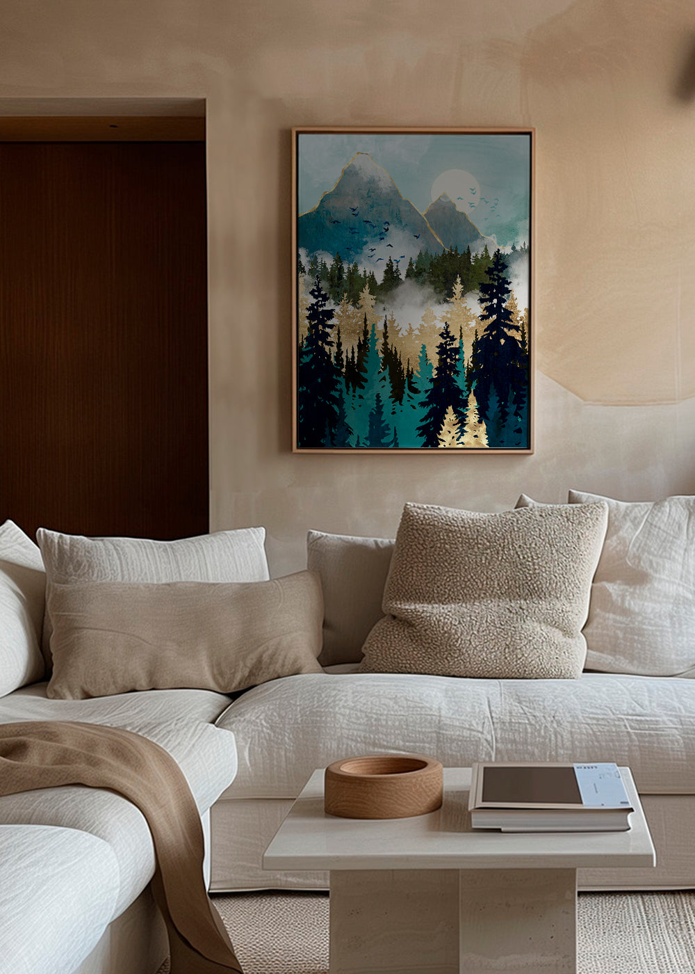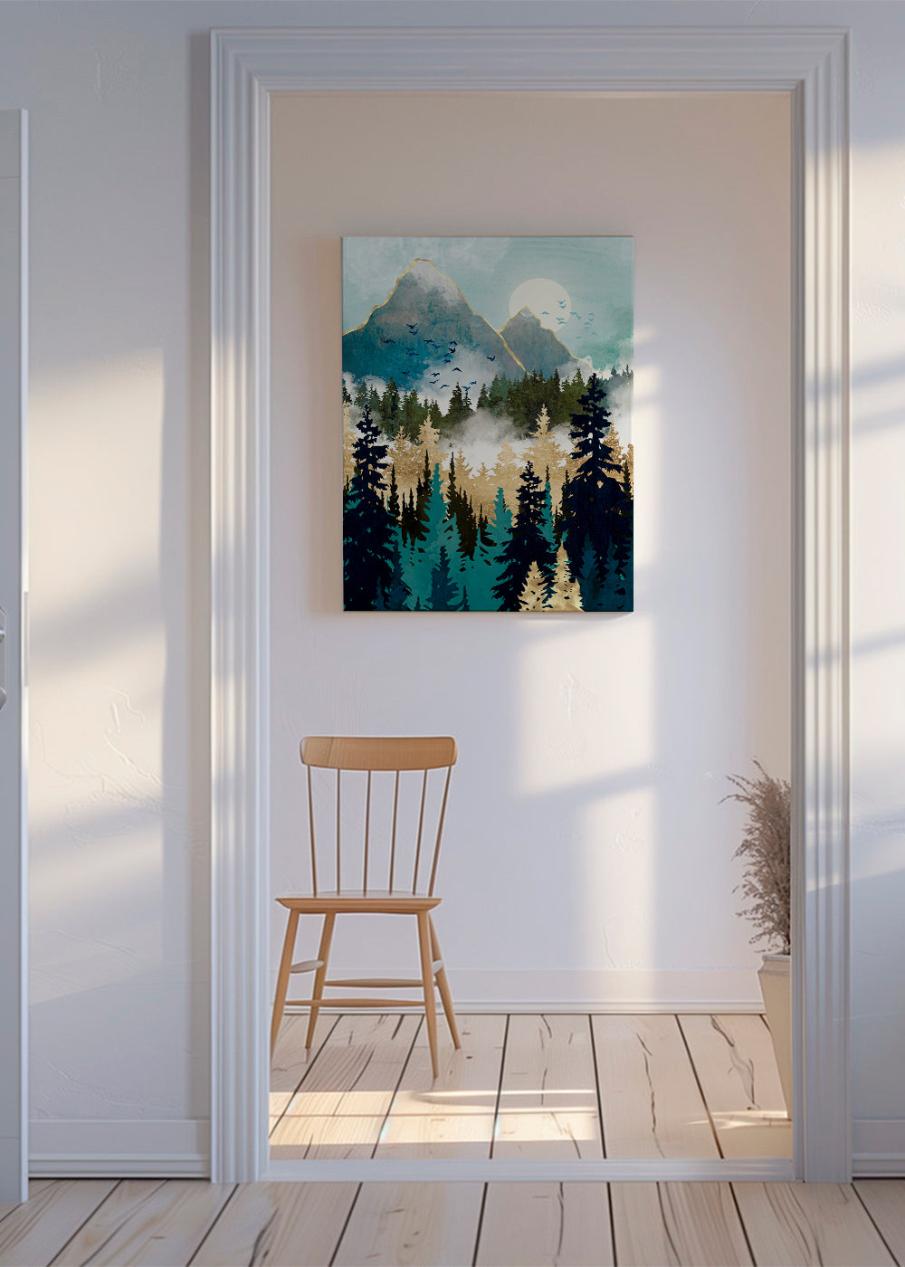 Bella stampa della collezione quadri di paesaggi montani, della collezione dell'artista SpaceFrog Designs, sui toni verdi, e con orientamento verticale. La natura è una delle più grandi opere d'arte che esistono, non credi? Abbina i nostri quadri di paesaggi per ottenere uno stile di home decor che trasmetta freschezza. Un tocco moderno per la tua abitazione.