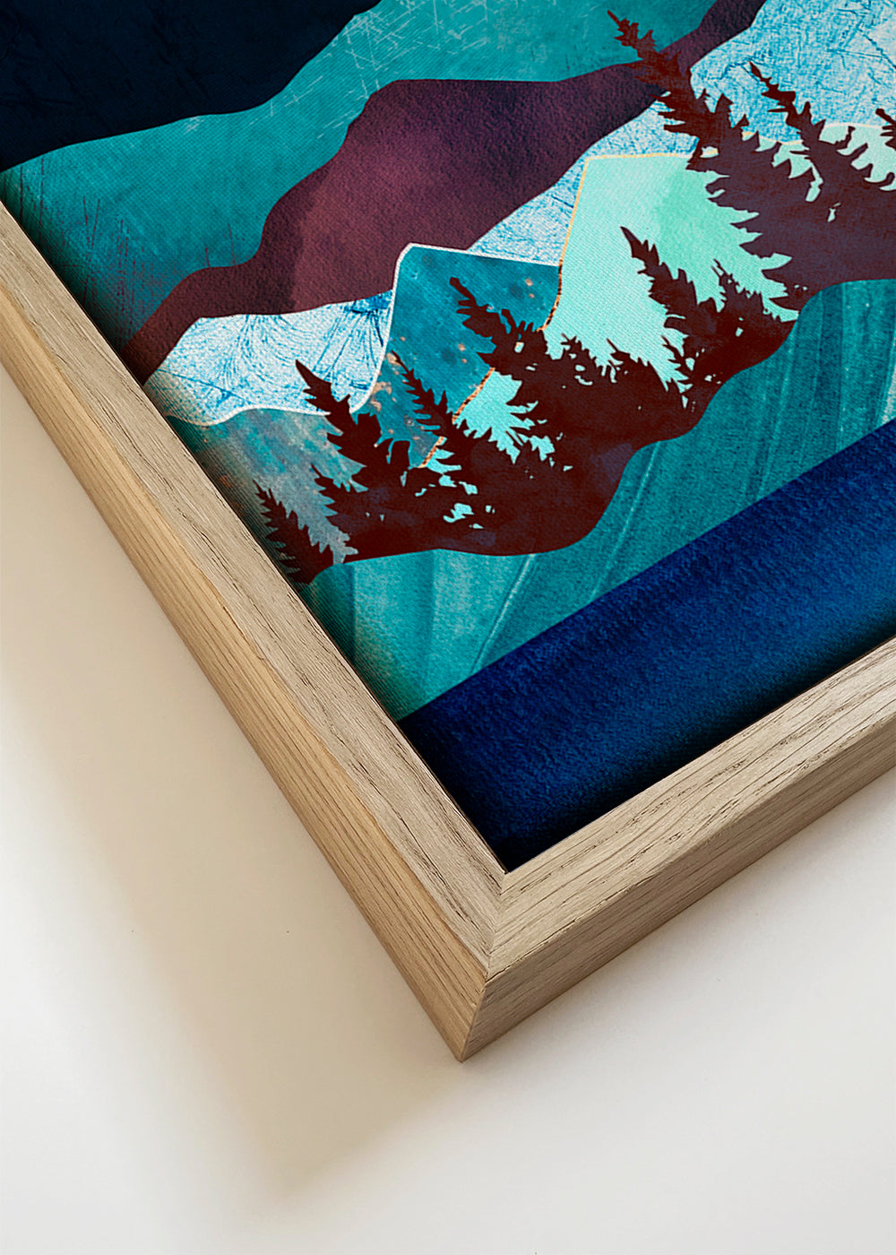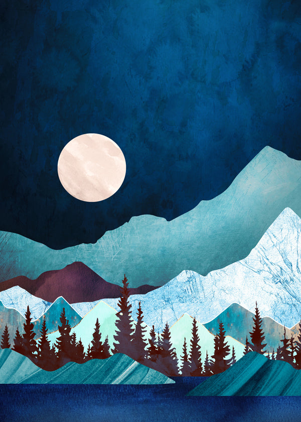 Una stampa della serie di quadri di paesaggi montani, di SpaceFrog Designs, con pigmenti blu, e orientata in senso verticale. Un bel paesaggio ideale da abbinare ad altri quadri sulla natura. Trasforma la tua casa in un luogo pieno di stile.