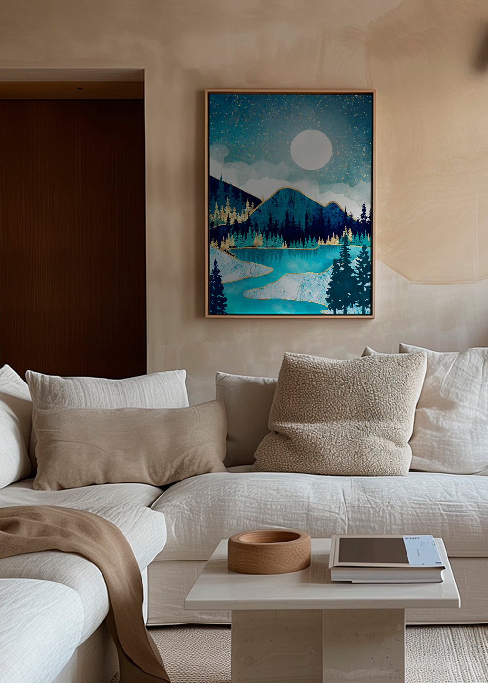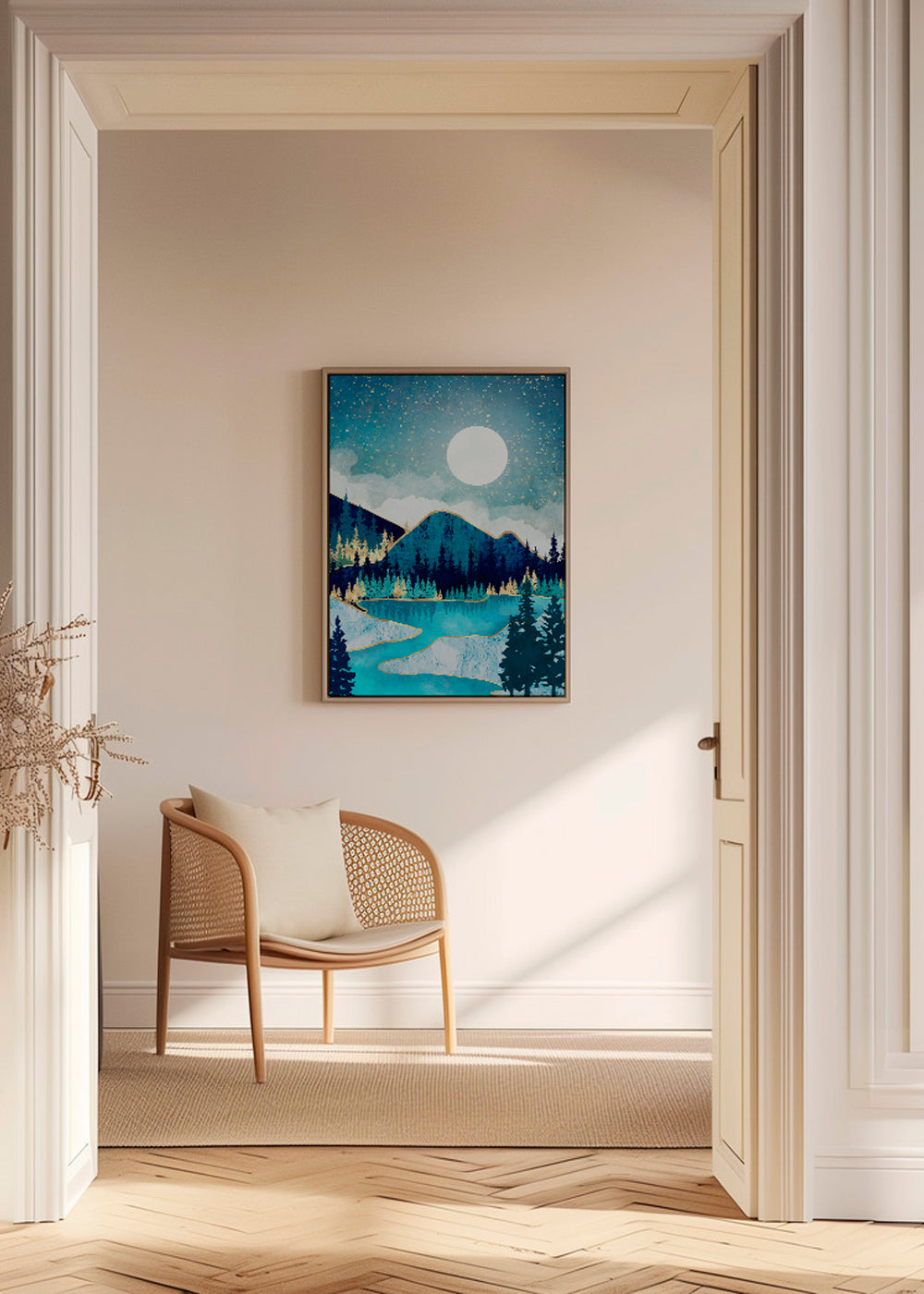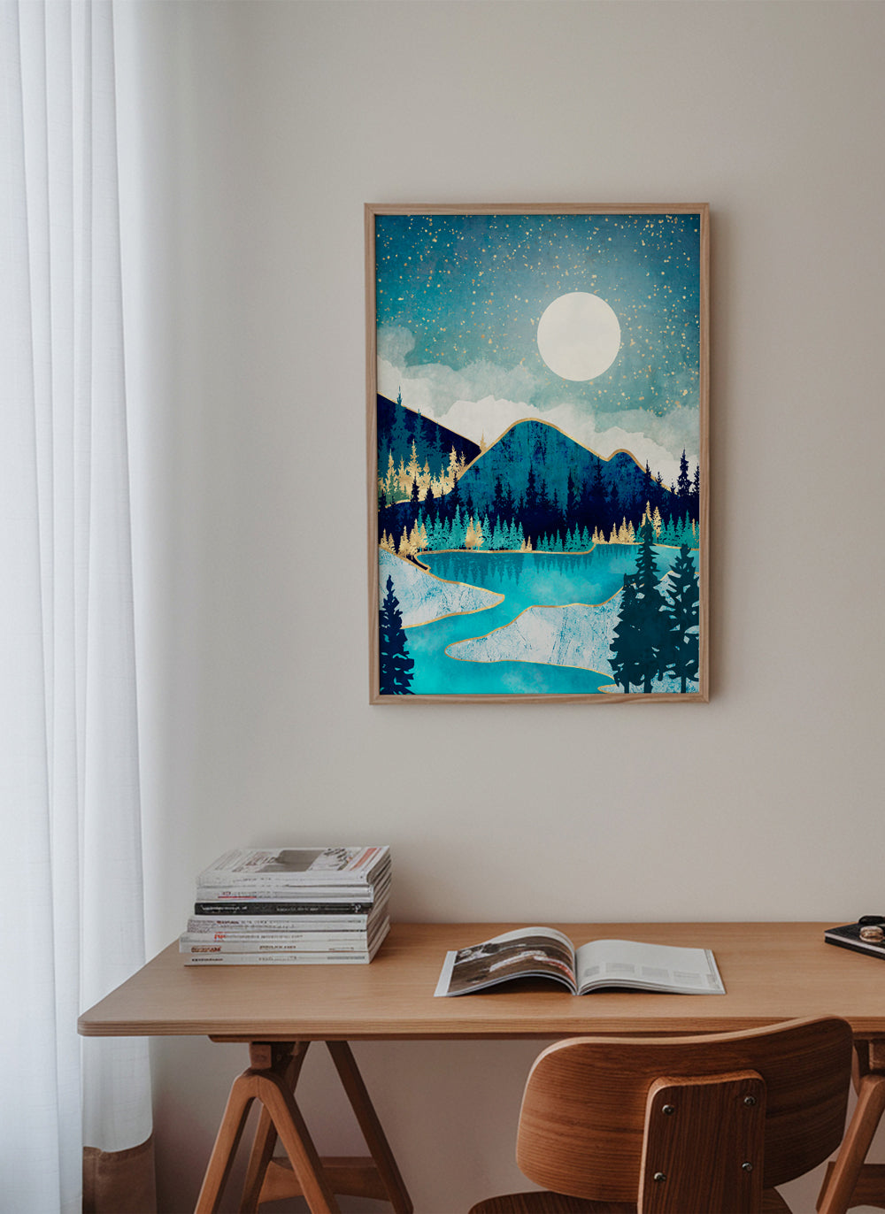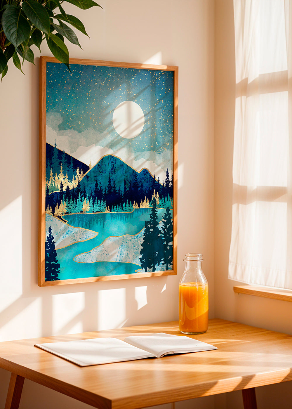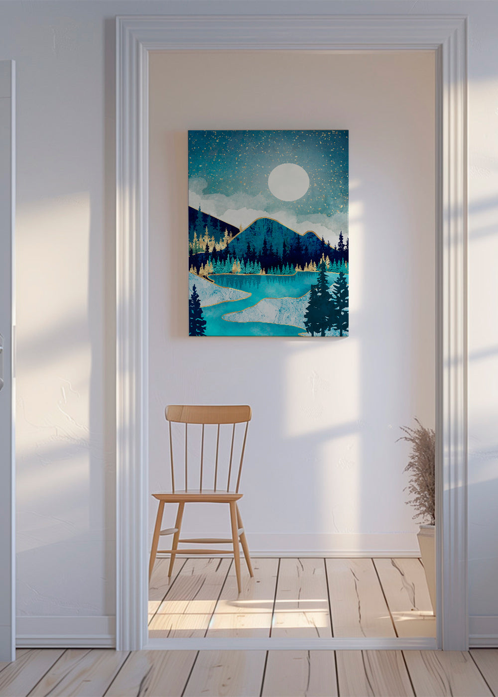 Un design della nostra collezione di quadri di paesaggi e natura, dell'artista SpaceFrog Designs, con sfumature dai toni blu, e nel formato verticale. L'home decor ispirato ai paesaggi dà un tocco di freschezza a qualsiasi spazio. Freschezza e originalità.