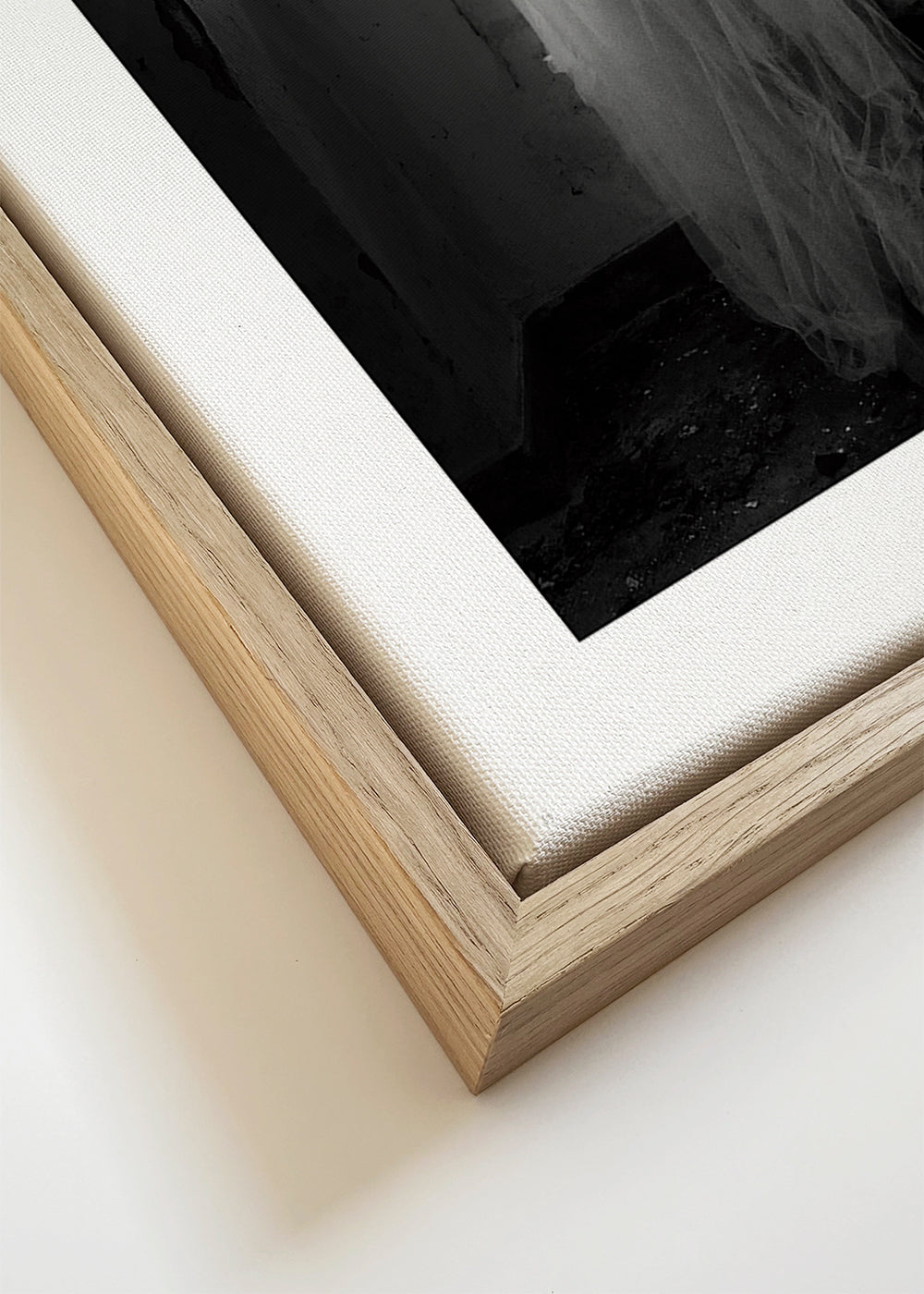 Se selezioni l'opzione passepartout, aggiungeremo la scatola di cartone bianca alla cornice e ridurremo il design dell'opera. Ad esempio, se selezioni un foglio di formato 50x70, con cornice e passepartout color rovere, ridurremo il disegno del foglio al formato precedente (40x50cm). In questo modo si adatterà perfettamente alla finestra interna del passepartout.
