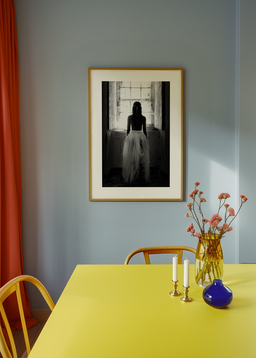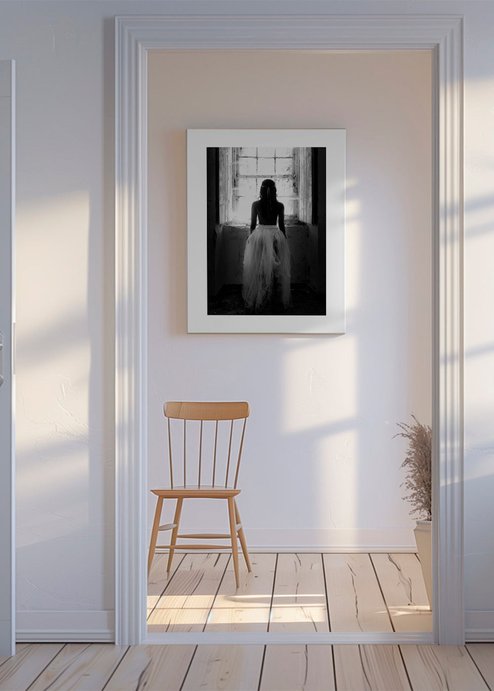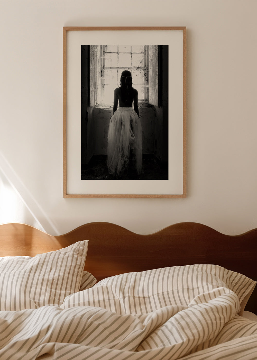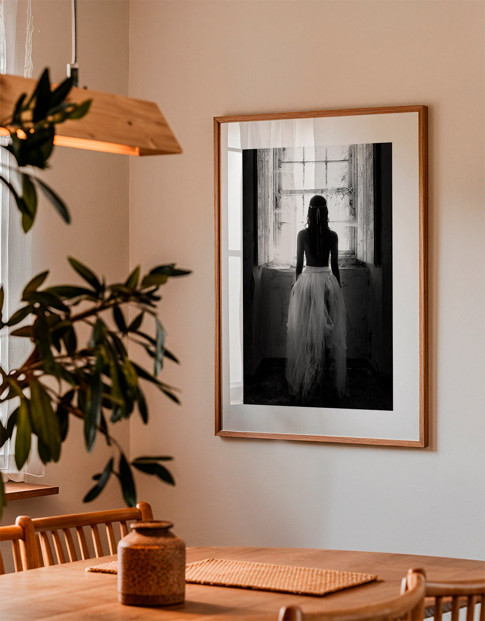 Bello quadro della nostra collezione di quadri di donne, originale di 1x, con tonalità di colori nero, e da formato verticale. Le foto da incorniciare aiutano a modernizzare gli ambienti della casa. Crea l'ambiente perfetto. L'immagine include un margine bianco che fa da contrasto all'opera e la valorizza.