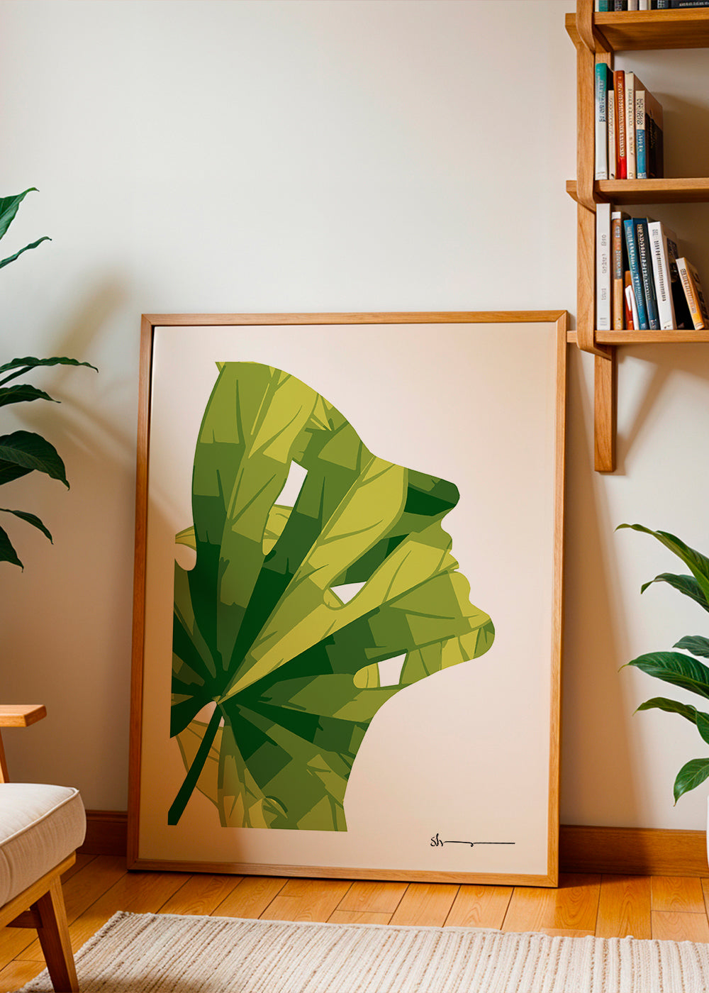 Questo design ispirato alla collezione di quadri con foglie, di Yoga in Art, con toni verdi, e nel formato verticale. Una scelta ideale se ami la botanica ma non hai il tempo di innaffiare le piante. I quadri con motivi botanici si abbinano alla perfezione con scritte e frasi. Un articolo che di sicuro darà un tocco di stile in più all'ambiente.