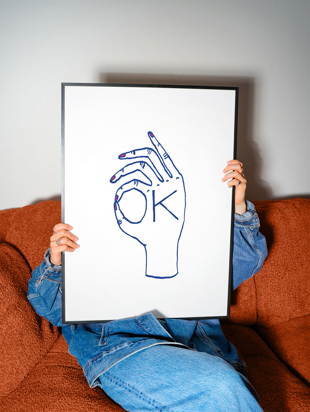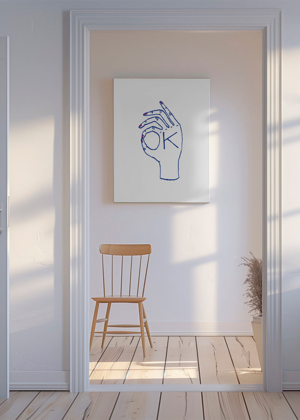 Una stampa della nostra collezione di quadri con mani, ideata da typealive, dalle sfumature blu, e con orientamento verticale. Le illustrazioni sono una delle forme d'arte più chiare, e questo è un design che non passerà inosservato. Crea un angolo unico.