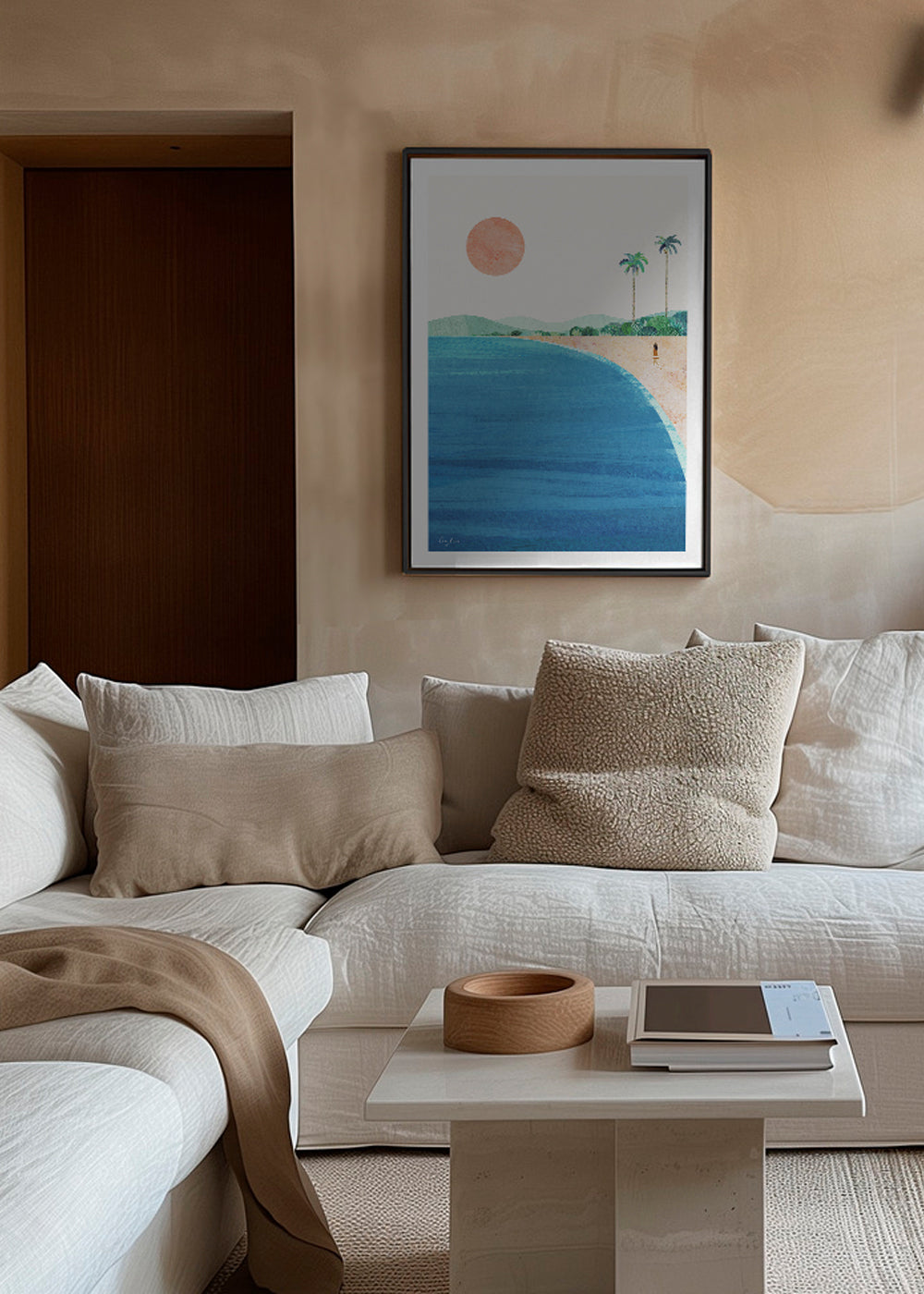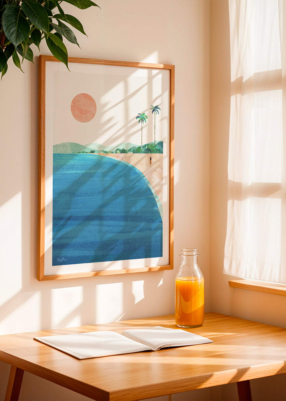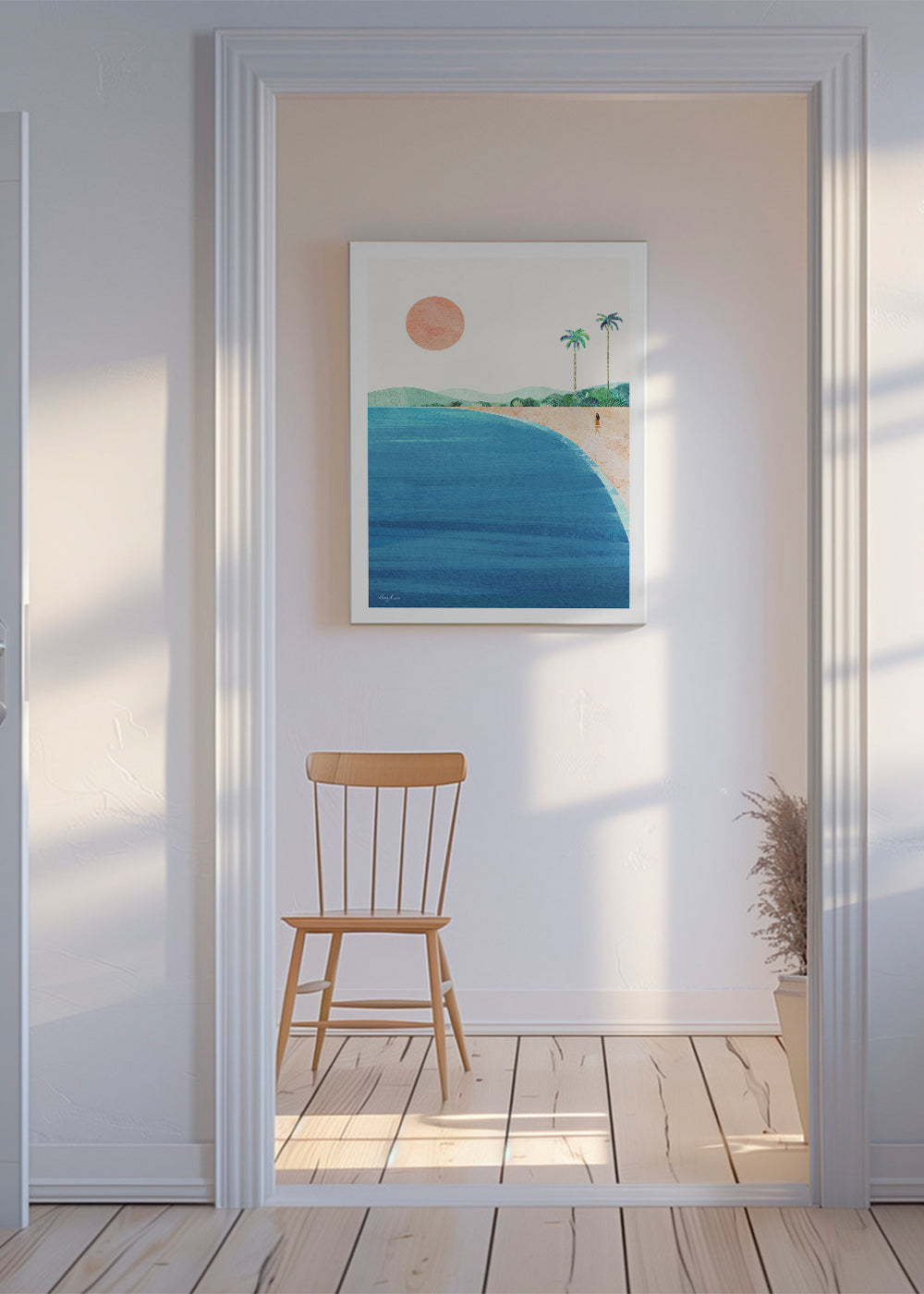 Bella stampa della nostra selezione di quadri con mare, originale di Henry Rivers, con toni blu, e da appendere in posizione verticale. L'home decor ispirato ai paesaggi dà un tocco di freschezza a qualsiasi spazio. Una parete con dei quadri può trasformare completamente lo stile di una stanza.