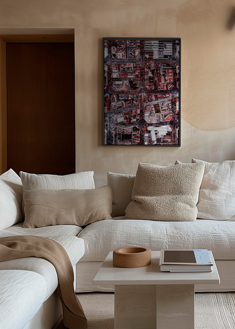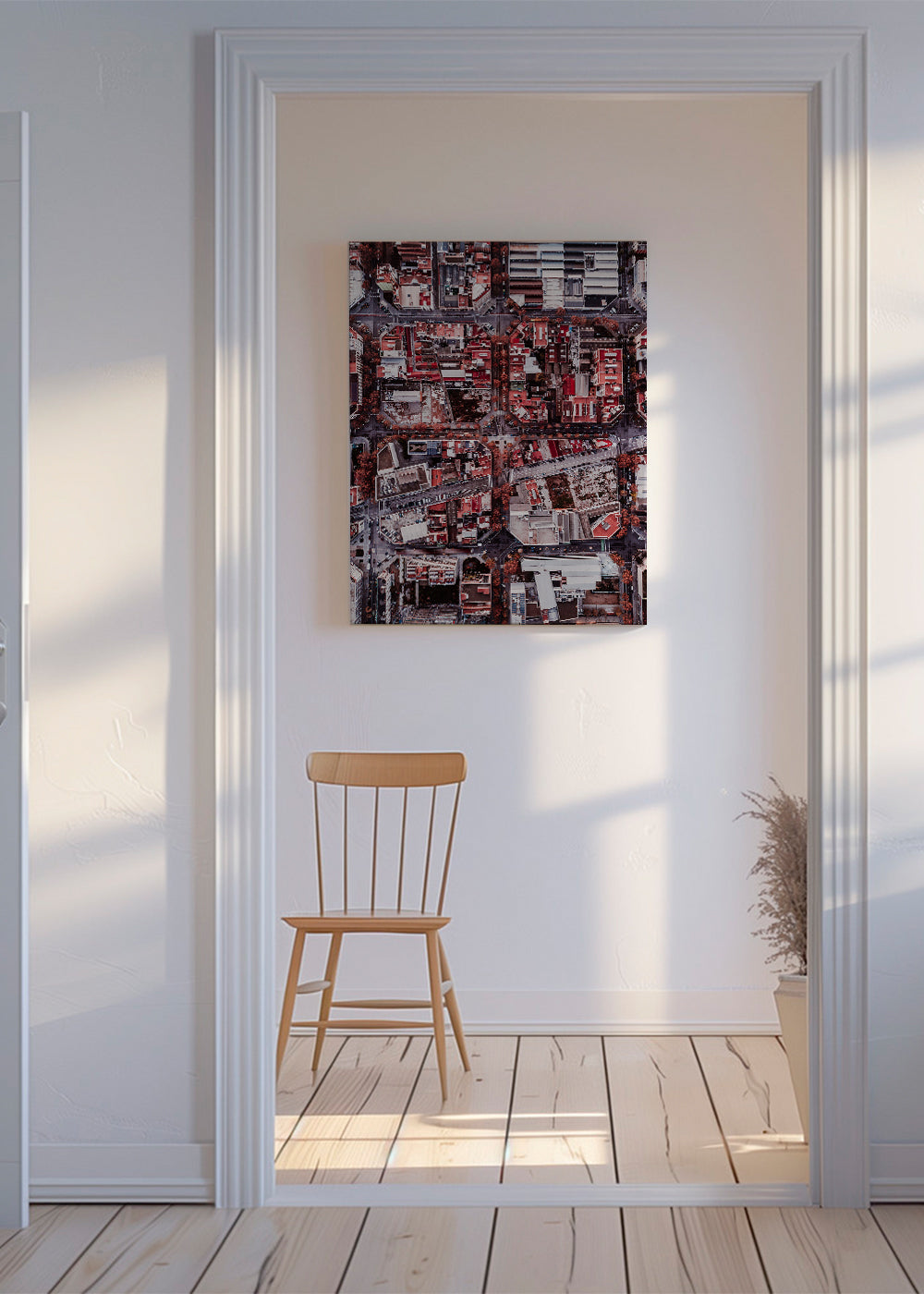 Una stampa della nostra collezione di stampe e quadri architettonici, realizzata da Chris Abatzis, con tonalità di colori rossi, e con disposizione verticale. Se ami passare ore e ore a girovagare senza meta alla scoperta di nuovi angoli di mondo, questo è il quadro che fa per te. Cambia il look dei tuoi ambienti con un tocco artistico.