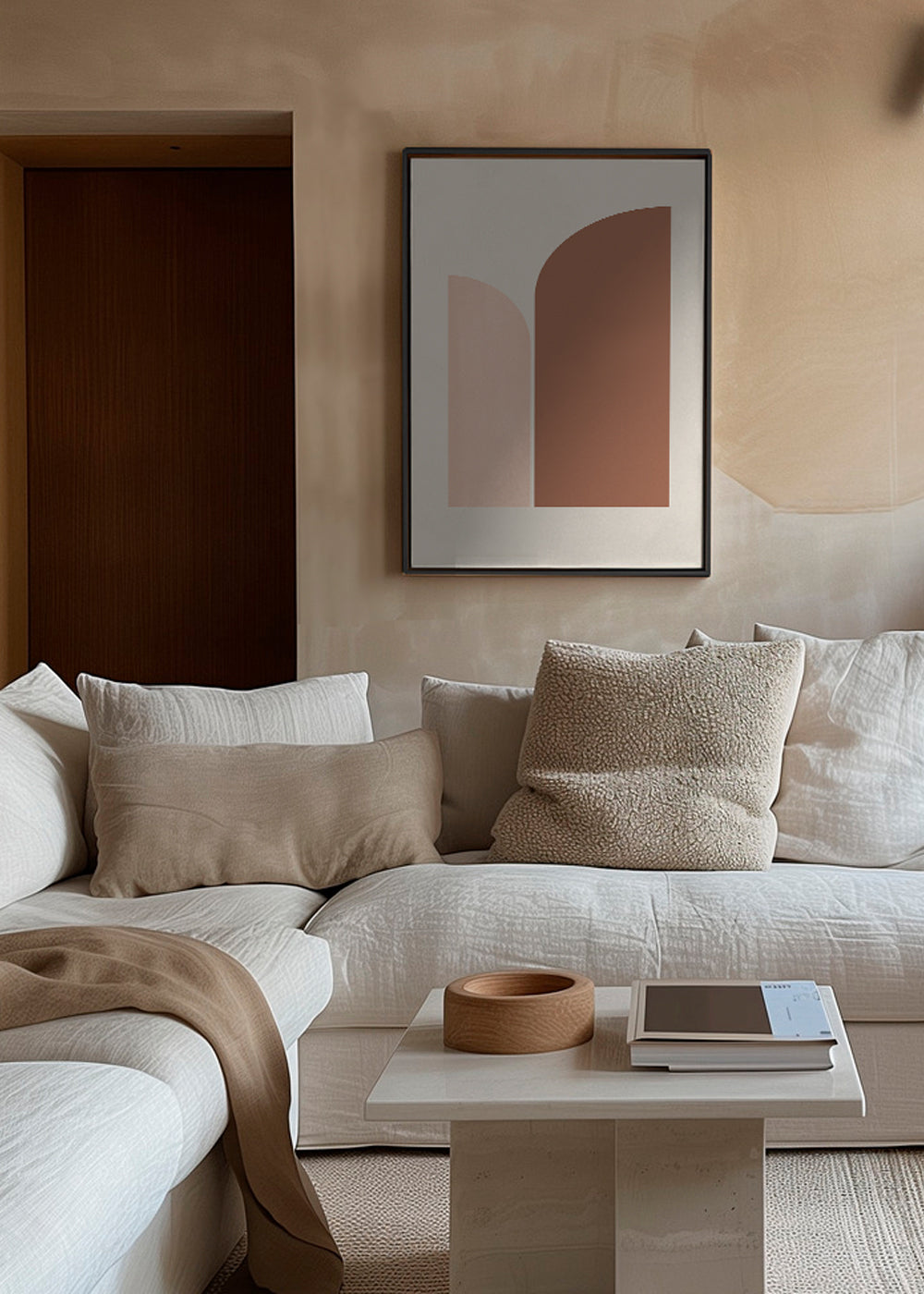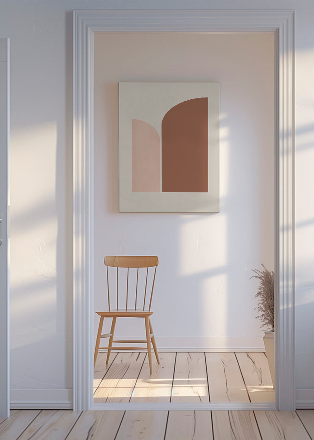 Una stampa della serie di quadri geometrici, creata da Kathrin Pienaar, con tonalità di colori marroni, e ideale da mettere in posizione verticale. L'arte geometrica è uno stile raffinato per la decorazione delle pareti di casa. Cambia il look dei tuoi ambienti con un tocco artistico.