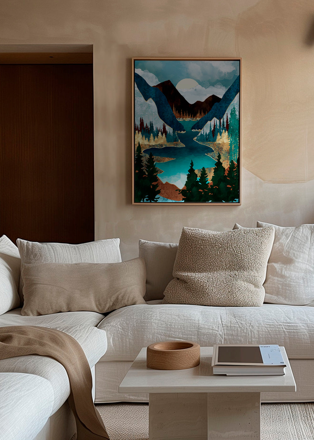 Un quadro dal nostro repertorio di quadri di paesaggi e natura, creata da SpaceFrog Designs, con toni blu, e da appendere in posizione verticale. La natura è una delle più grandi opere d'arte che esistono, non credi? Abbina i nostri quadri di paesaggi per ottenere uno stile di home decor che trasmetta freschezza. Pareti eleganti per abitazioni chic.