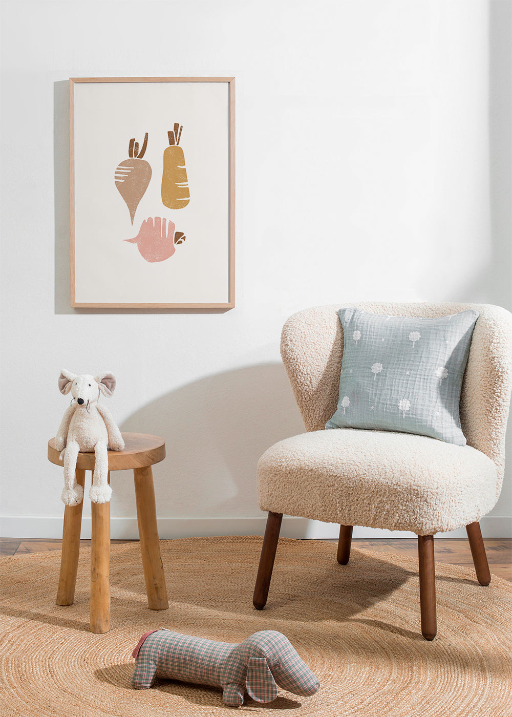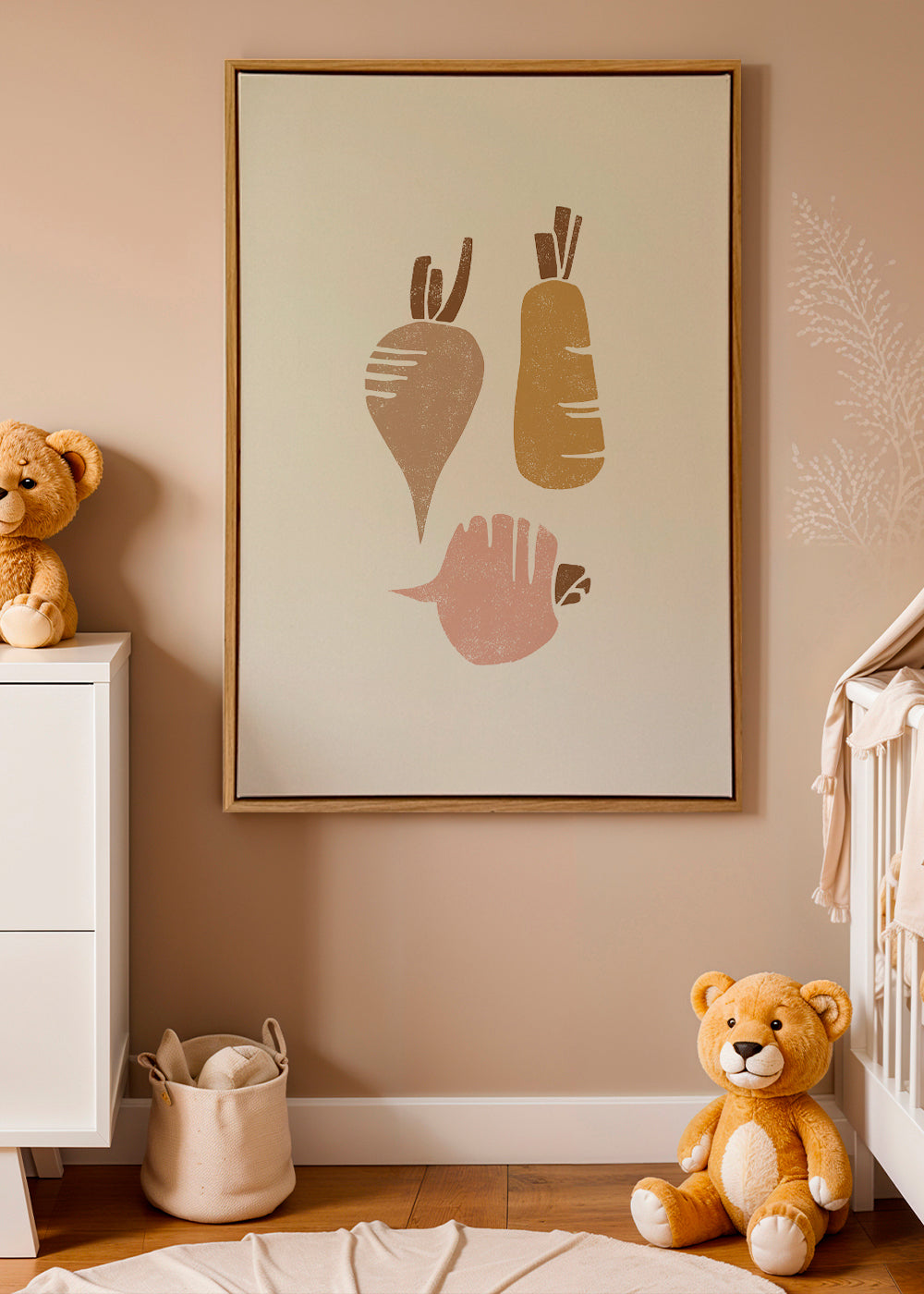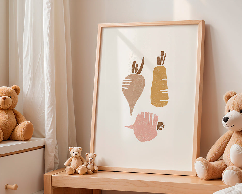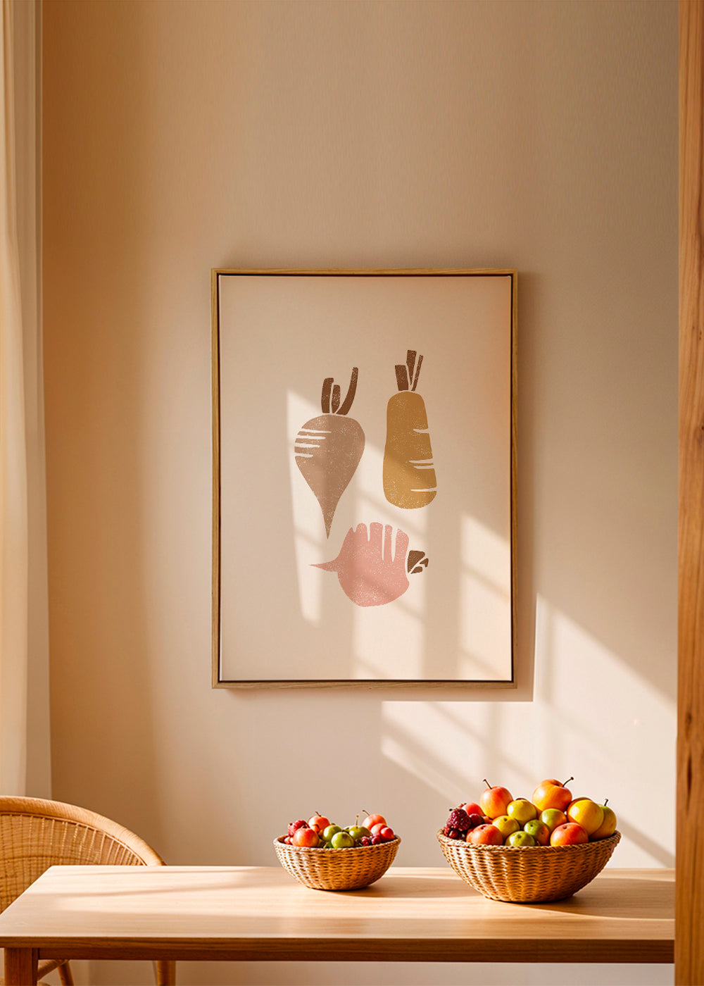 Una immagine della nostra selezione di quadri con frutta e verdura, di Marta Munte, con sfumature dai colori rose, e ideale da mettere in posizione verticale. Le illustrazioni sono una delle forme d'arte più chiare, e questo è un design che non passerà inosservato. Un design raffinato, all'altezza del tuo home decor.