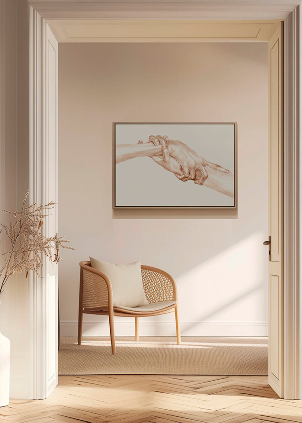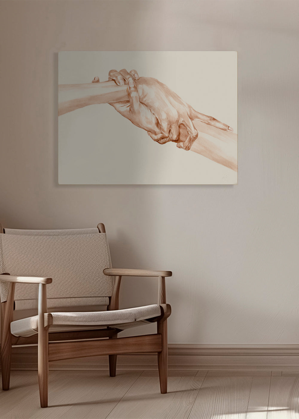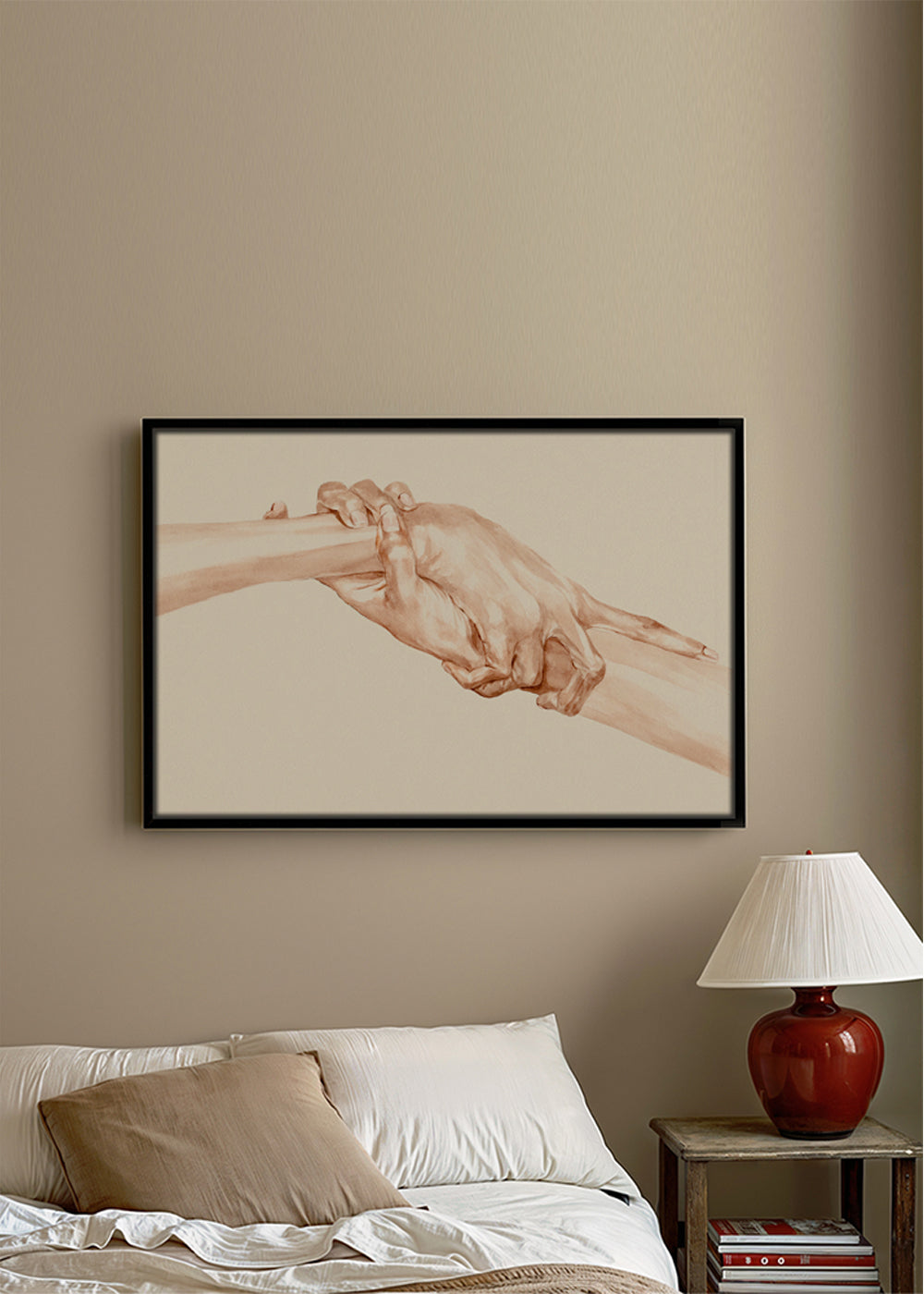 Una stampa ispirato alla collezione di quadri con mani, creata da Sophia Novosel, con toni marroni, e con posizione orizzontale. Con la natura nel suo massimo splendore, i quadri di paesaggi trasmettono grande serenità. Non esistono pareti belle o brutte, esistono solo pareti spoglie o pareti con personalità.