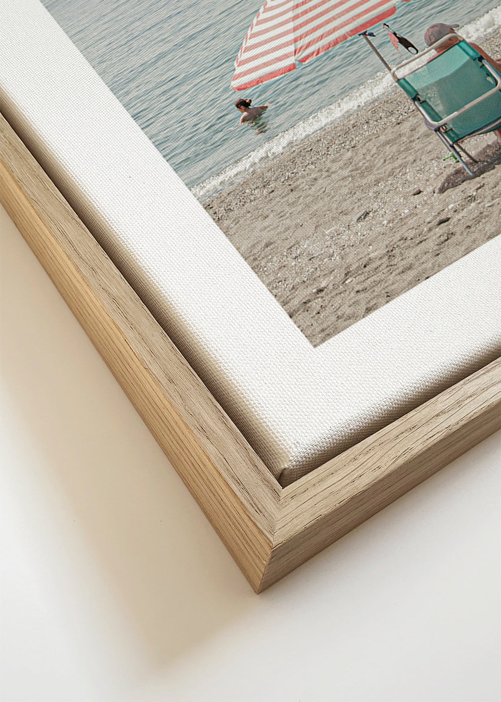 Se selezioni l'opzione passepartout, aggiungeremo la scatola di cartone bianca alla cornice e ridurremo il design dell'opera. Ad esempio, se selezioni un foglio di formato 50x70, con cornice e passepartout color rovere, ridurremo il disegno del foglio al formato precedente (40x50cm). In questo modo si adatterà perfettamente alla finestra interna del passepartout.