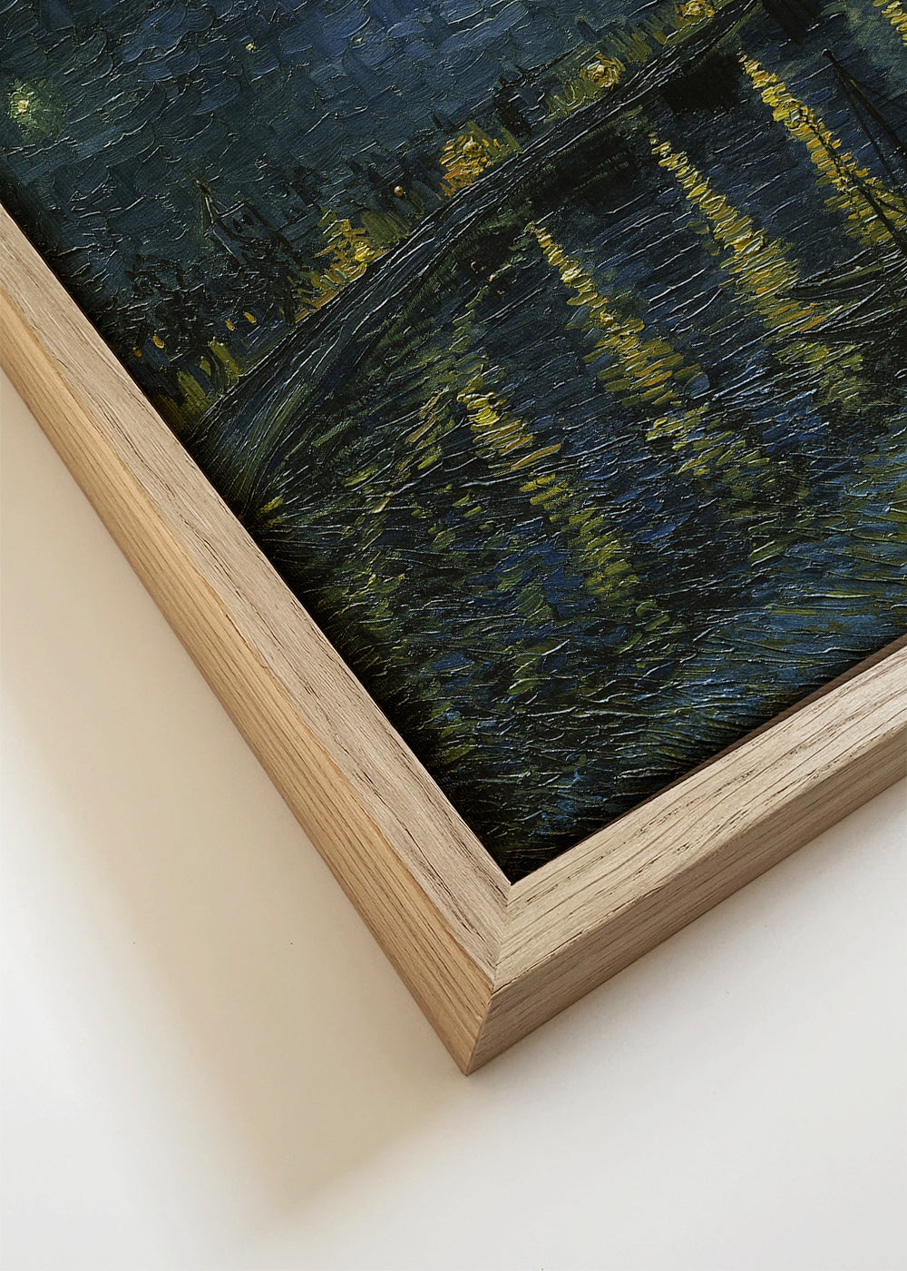 Per evitare rotture, le nostre cornici incorporano vetro acrilico al posto del vetro. Il vetro acrilico riproduce l'effetto del vetro, ma evita possibili danni durante il trasporto o il posizionamento della cornice.