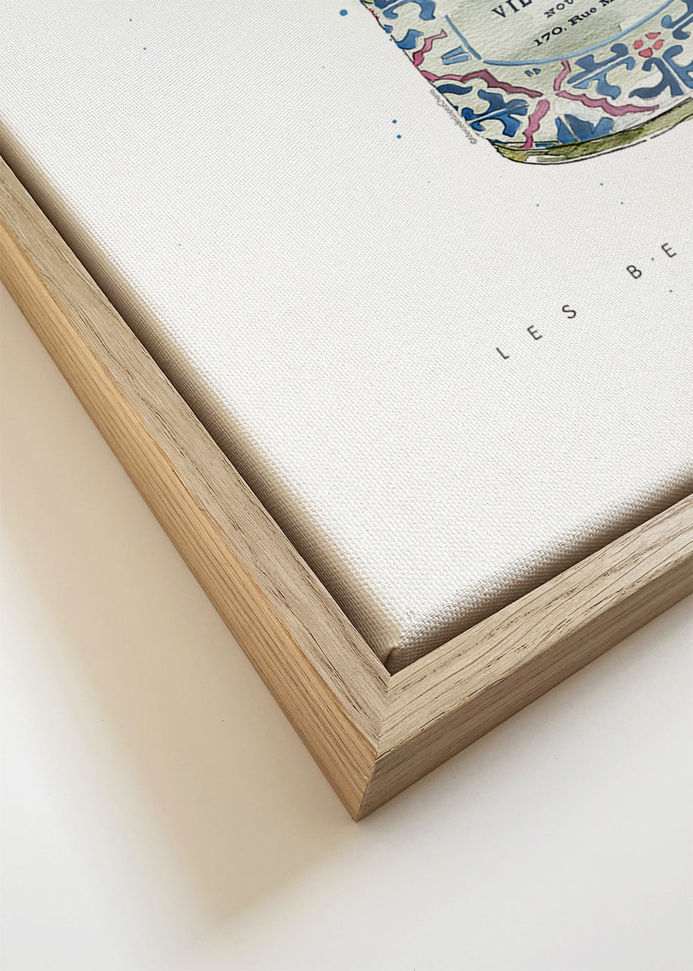 Per evitare rotture, le nostre cornici incorporano vetro acrilico al posto del vetro. Il vetro acrilico riproduce l'effetto del vetro, ma evita possibili danni durante il trasporto o il posizionamento della cornice.