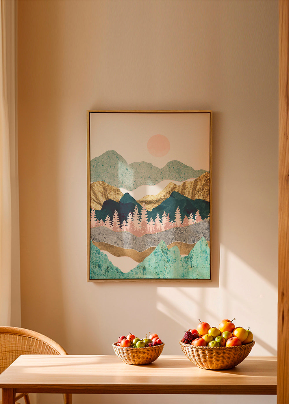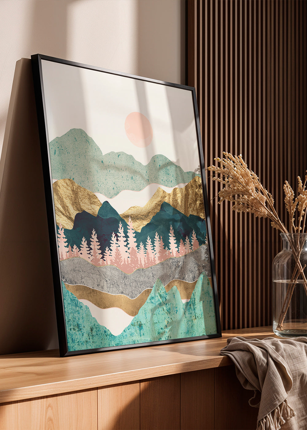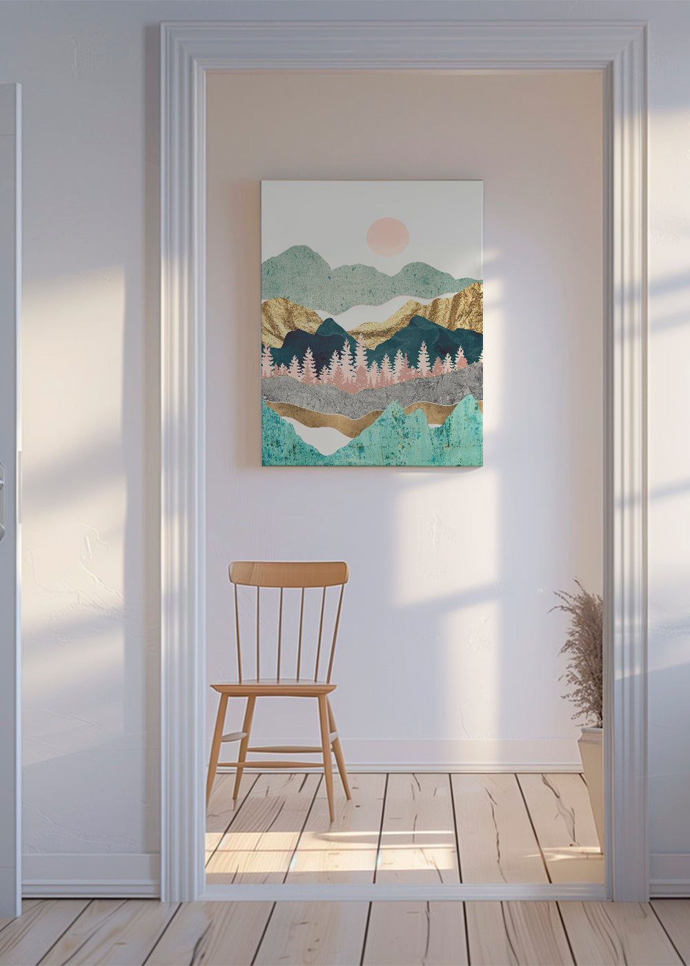 Una immagine appartenente alla categoria di quadri di paesaggi e natura, dell'artista SpaceFrog Designs, sui toni verdi, e da appendere in posizione verticale. Un bel paesaggio ideale da abbinare ad altri quadri sulla natura. Pareti traboccanti di creatività.
