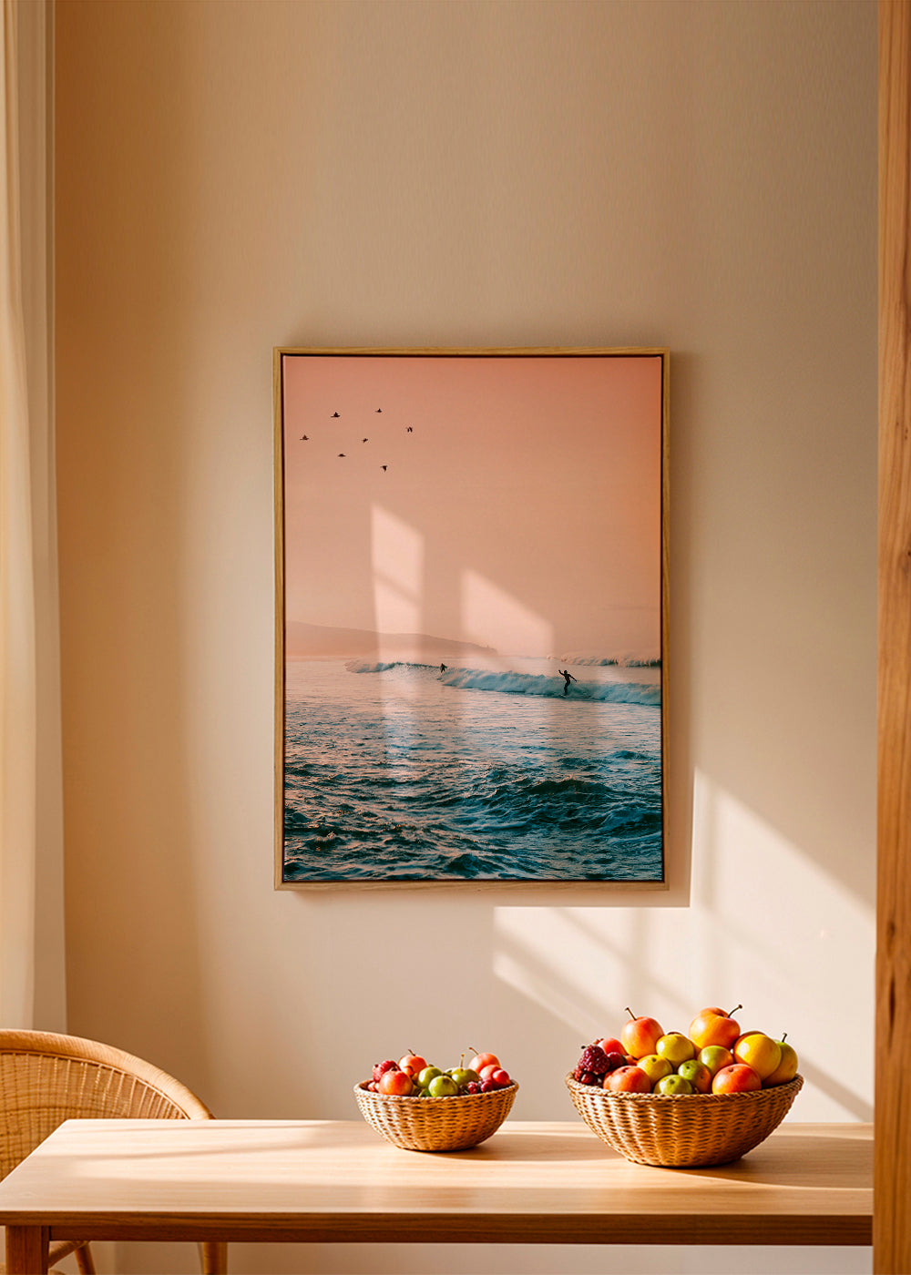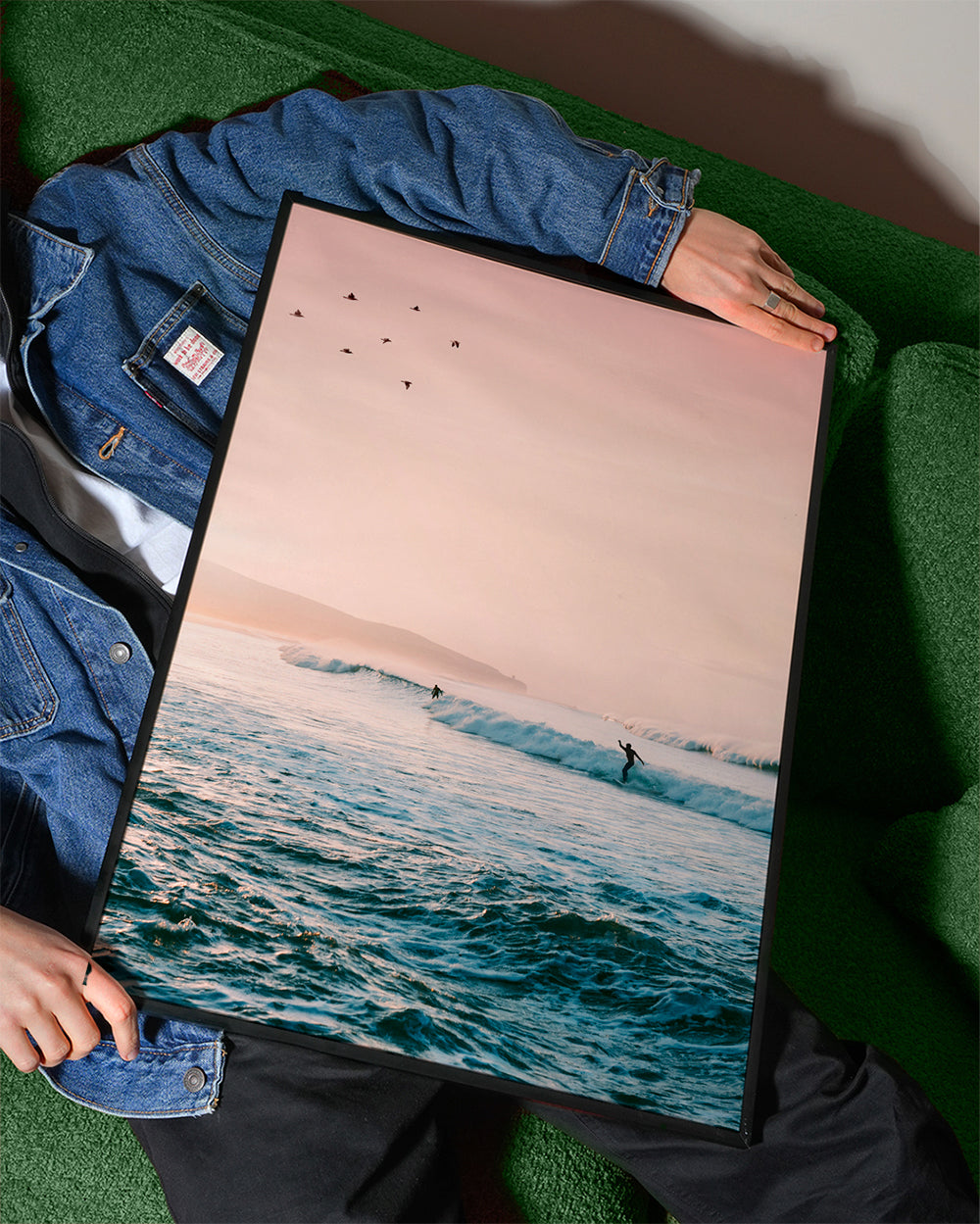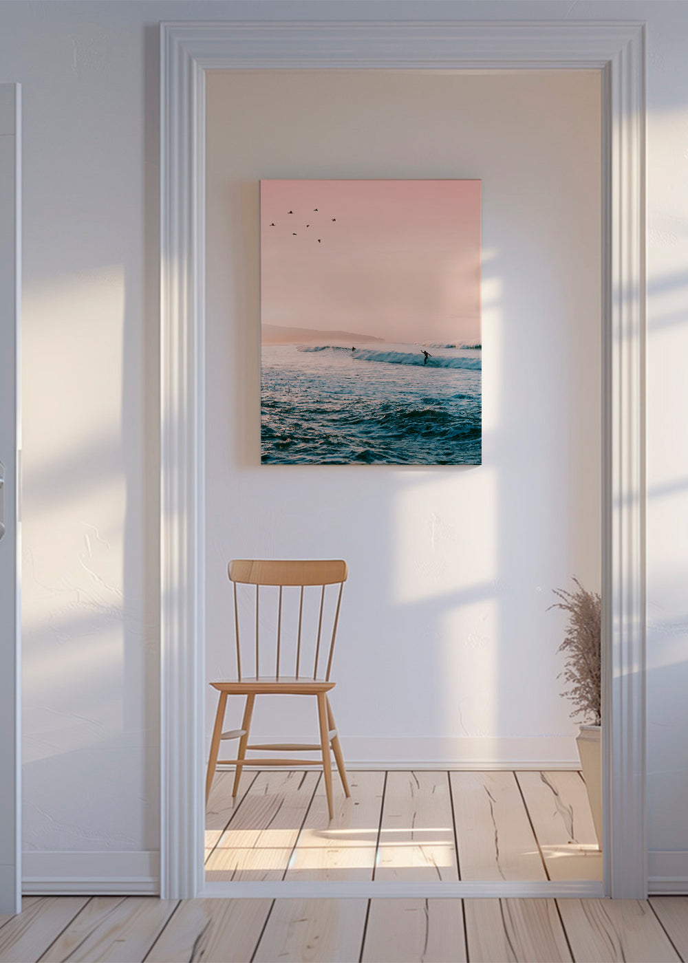 Questa stampa della nostra selezione di quadri di surf, di Gal Design, sui toni blu, e nel formato verticale. Ti piace lo sport? Le nostre stampe e quadri di sport sono la scelta giusta per decorare quell'angolino spoglio. Riempi le tue pareti di opere artistiche.