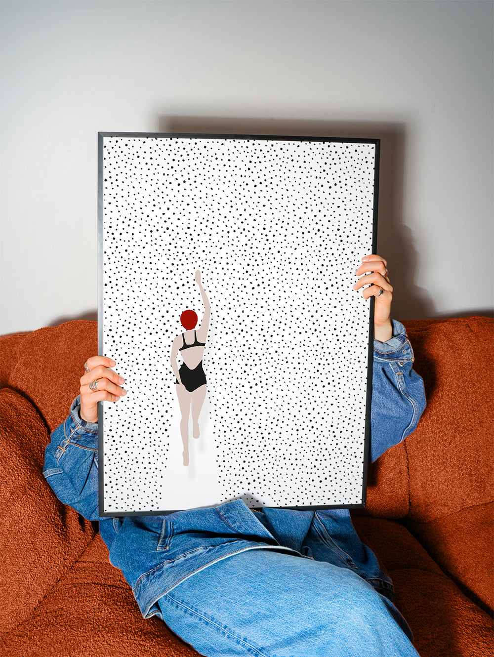 Un quadro della serie di quadri sul nuoto, di Amy & Kurt Berlin, con dei tocchi nero, e orientata in senso verticale. Un'opera ideale per chi ama lo sport. Fai spazio al tuo animo sportivo decorando le pareti con i nostri quadri di sport. Il quadro che quella parete sta aspettando.