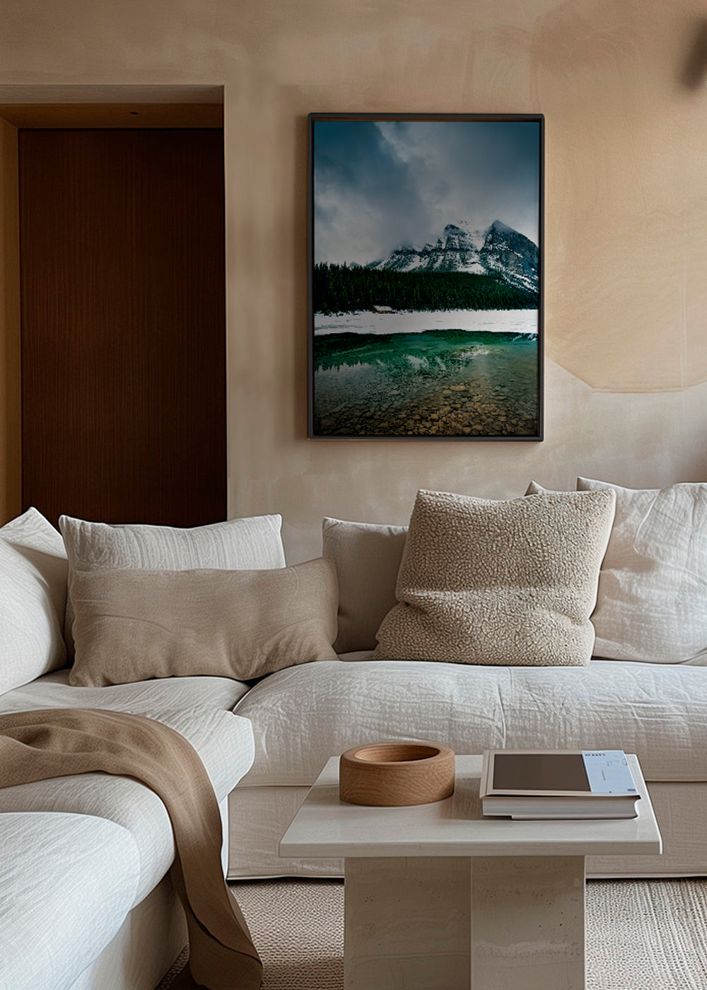 Un quadro della serie di quadri di paesaggi montani, dell'artista Cordula Schaefer, con sfumature dai colori verdi, e con orientamento verticale. Con la natura nel suo massimo splendore, i quadri di paesaggi trasmettono grande serenità. L'equilibrio perfetto tra originalità e design.