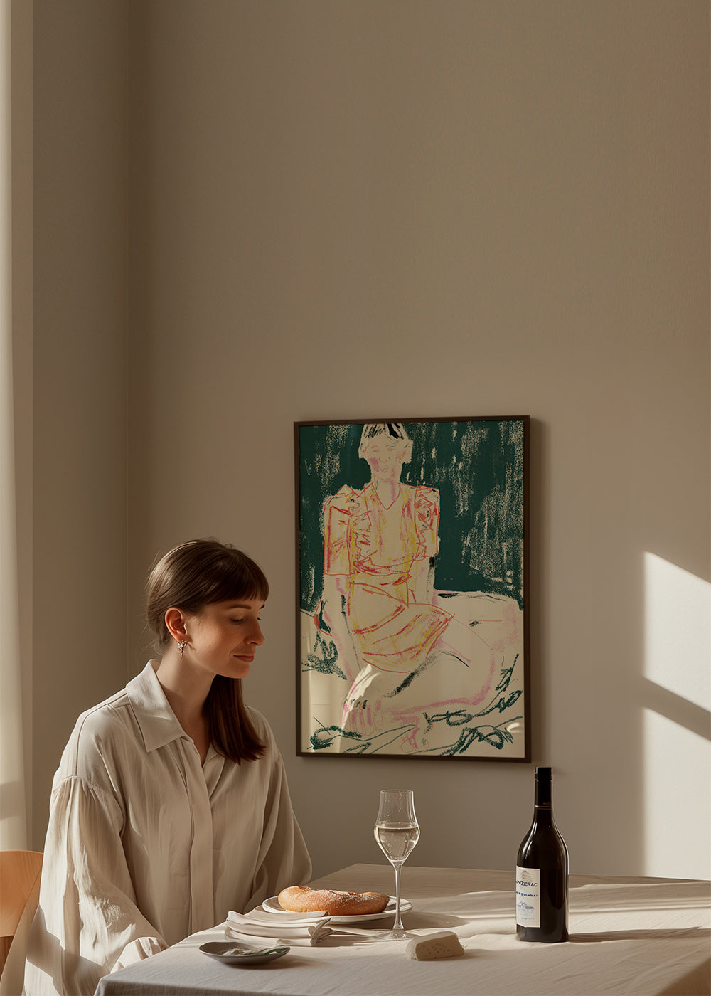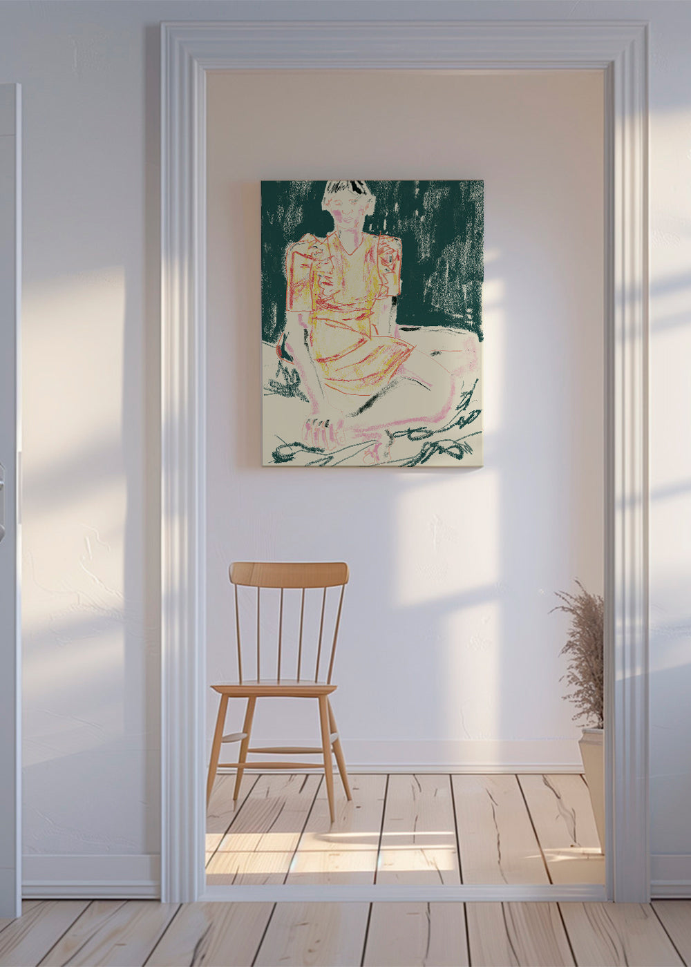 Bello quadro appartenente alla categoria di quadri di donne, originale di 1x, con toni verdi, e da formato verticale. I quadri con illustrazioni danno un tocco di originalità all'home decor della tua abitazione. Realizza un home decor dal design ricco di stile e creatività.