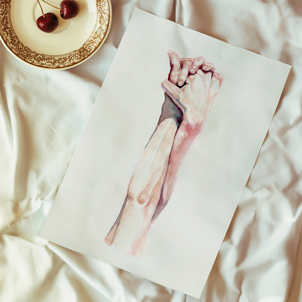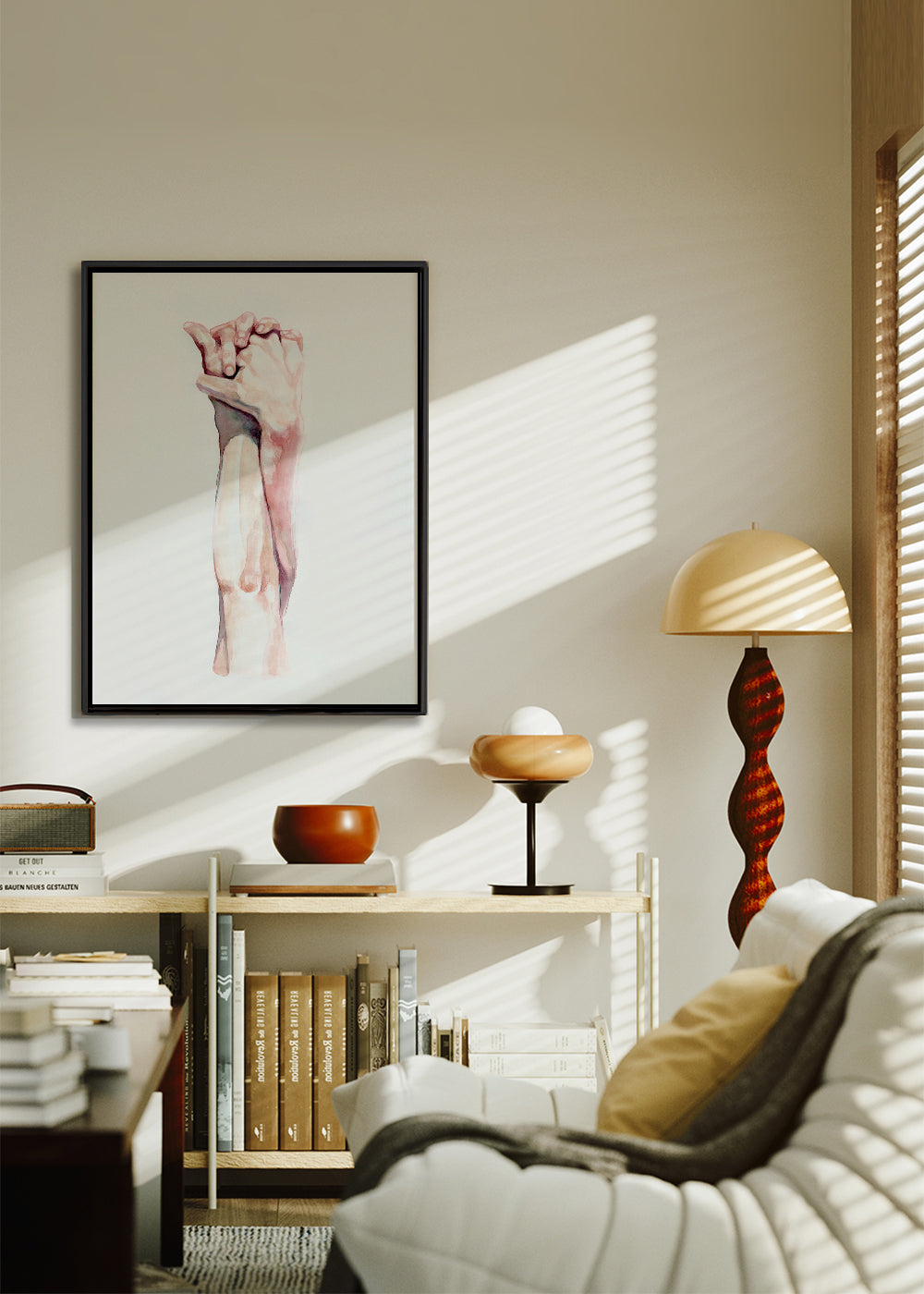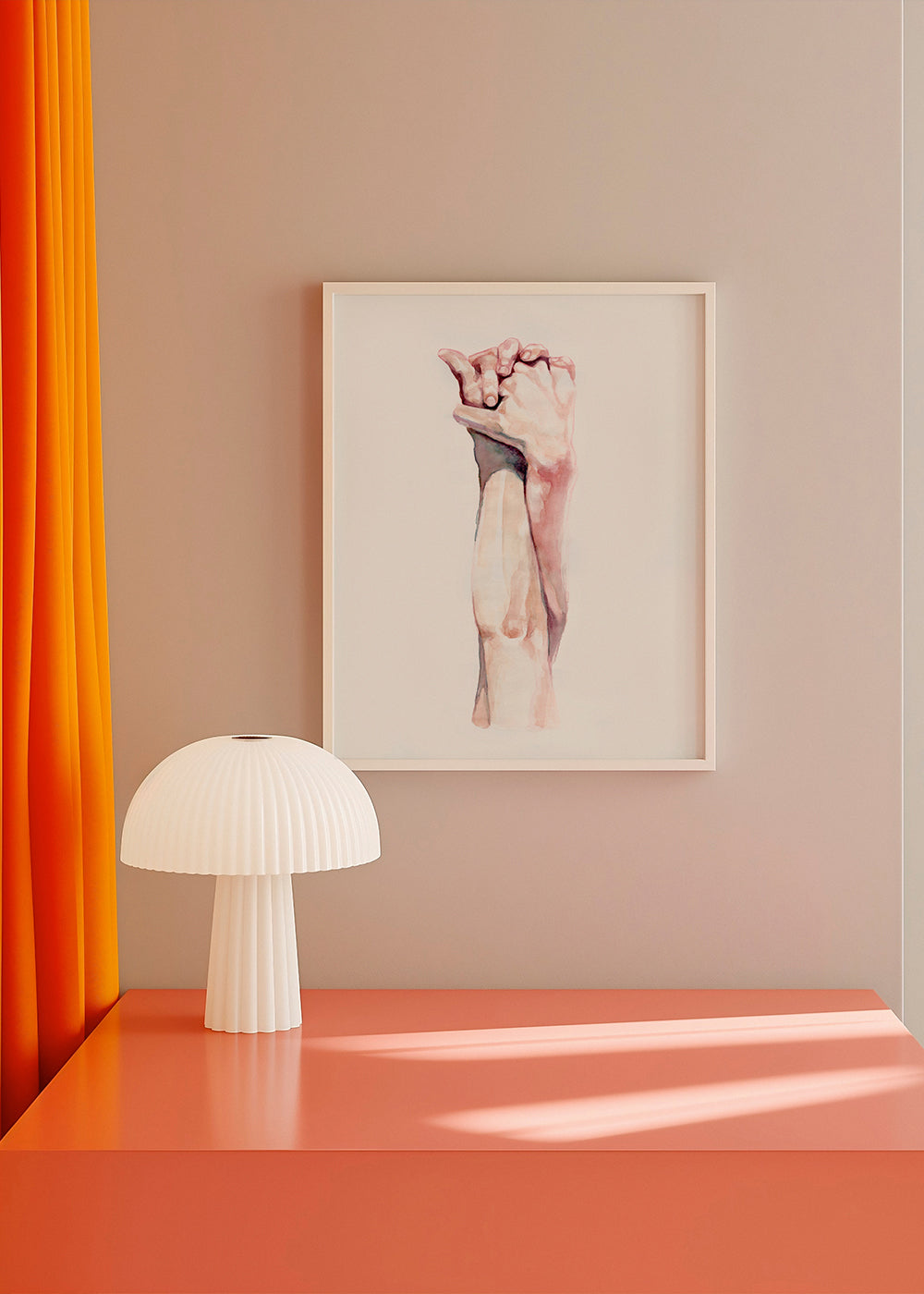 Un poster della nostra selezione di quadri con mani, dell'artista Sophia Novosel, con colori rose, e nel formato verticale. Un'opera ideale per ambienti che trasudano arte e creatività. Le nostre illustrazioni sono perfette per decorare ambienti spogli o monotoni. Lascia che l'arte riempia la tua casa.