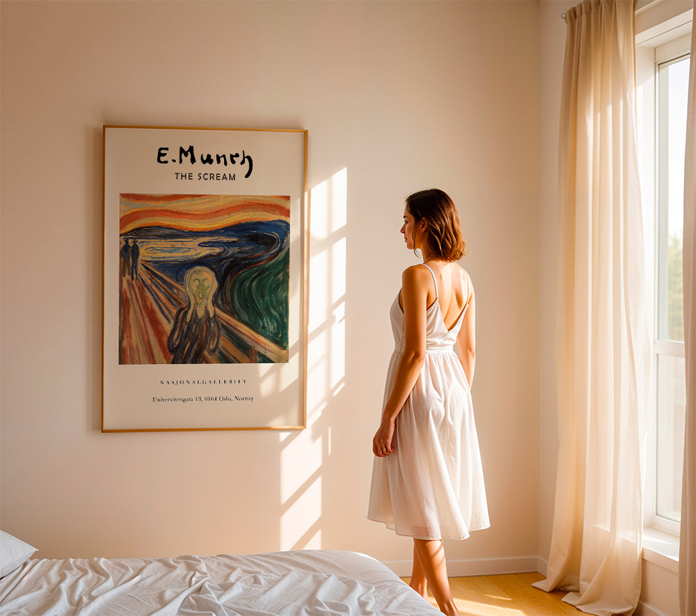 Se acquisti una cornice senza poster sul nostro sito web, riceverai il vetro acrilico con una protezione bifacciale blu per evitare graffi. Puoi rimuovere facilmente i due strati di protezione e avrai il telaio pronto per l'uso.