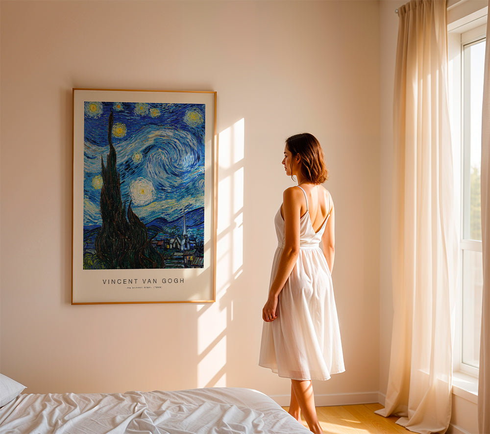 Tela: stampa su tessuto teso a mano per un effetto più artistico e tridimensionale, disponibile con o senza cornice.