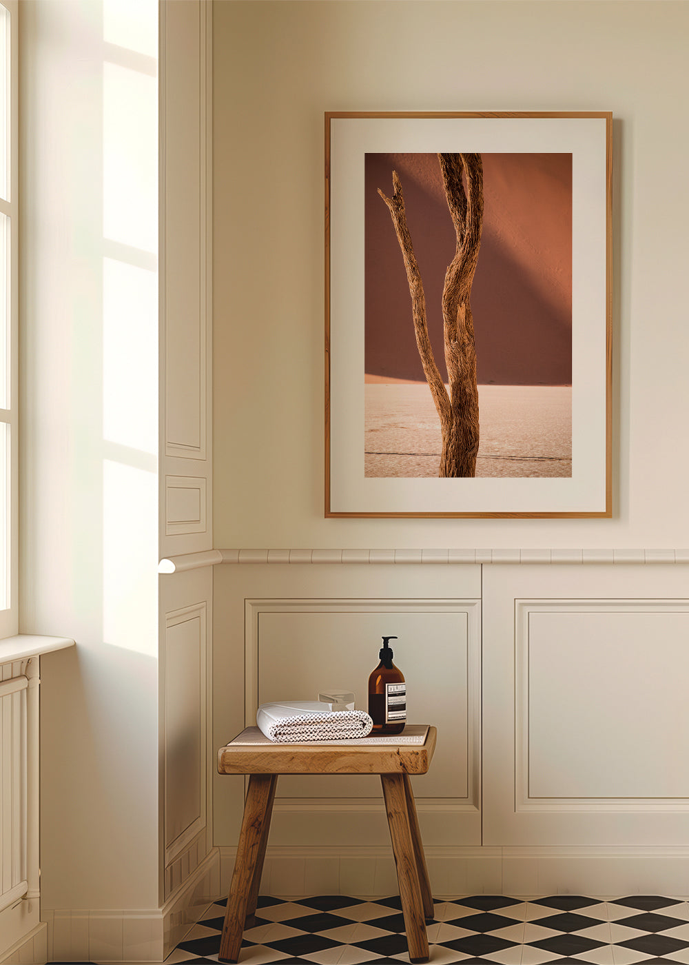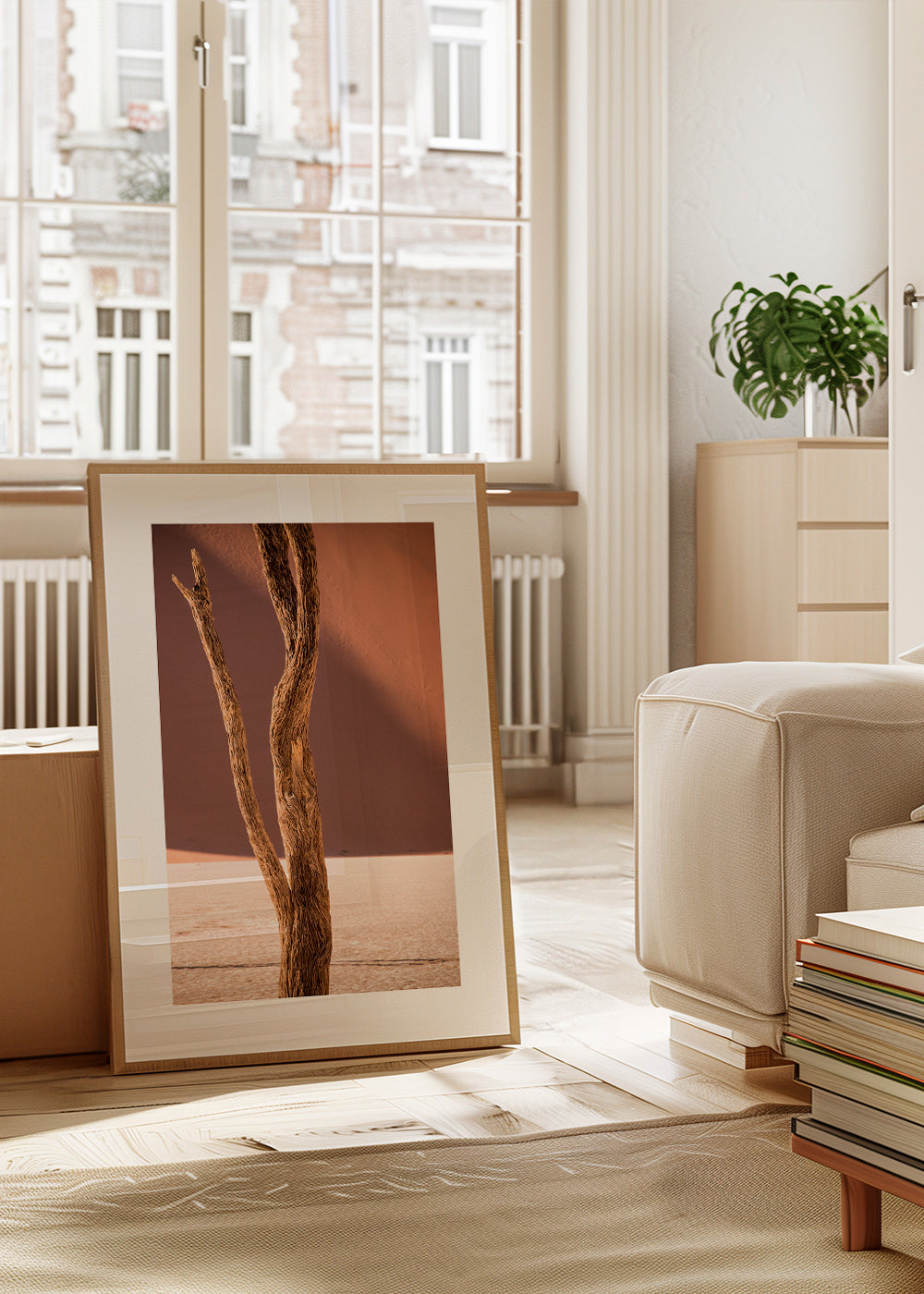 Un quadro della nostra selezione di quadri con alberi, di 1x, sui toni marroni, e con orientamento verticale. Quest'opera è perfetta per un home decor ispirato alla mindfulness, una scelta ideale per chi mette al primo posto la tranquillità nella propria abitazione. Costruisci il tuo angolo preferito. Quest'opera include un margine bianco che incornicia l'immagine e ne valorizza lo stile.