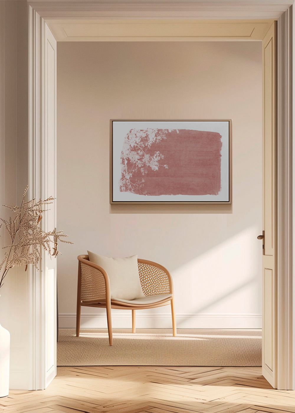 Quadro in stile nordico Tree foliage on red paint