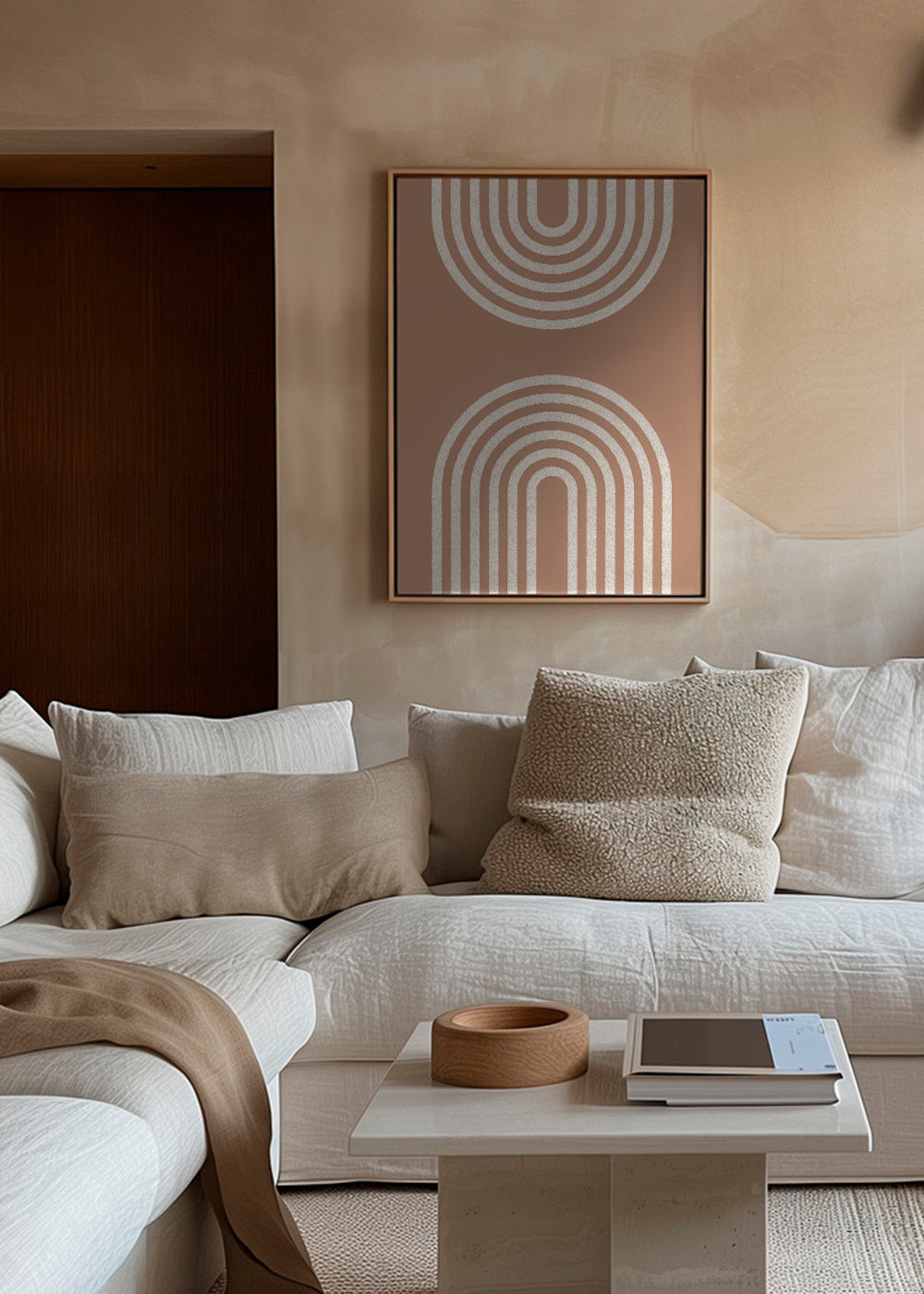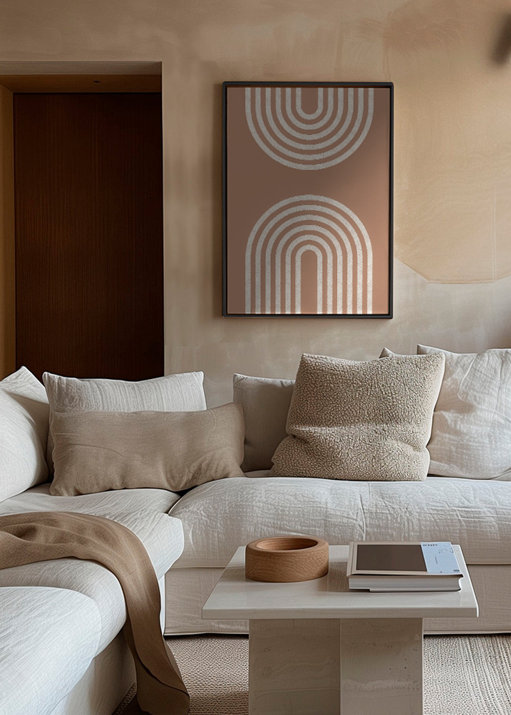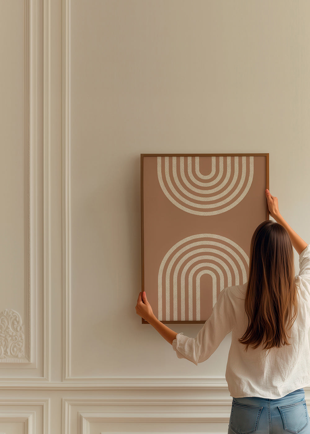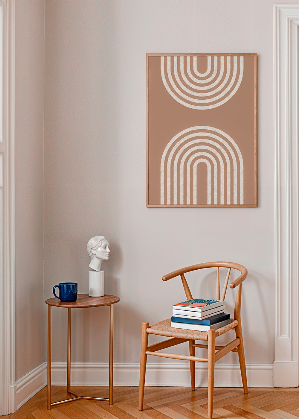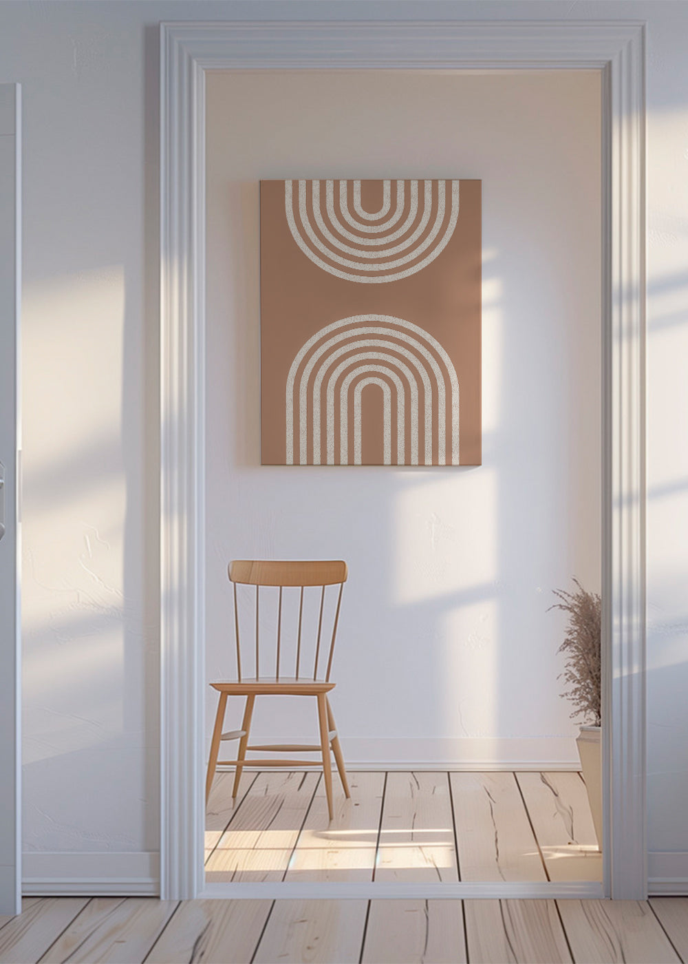 Un quadro della nostra collezione di quadri geometrici, realizzata da Kathrin Pienaar, sui toni marroni, e ideale da mettere in posizione verticale. Quest'opera con motivi astratti è ideale da abbinare a quadri geometrici e di arte astratta. Trasforma i tuoi ambienti a partire dalle pareti.