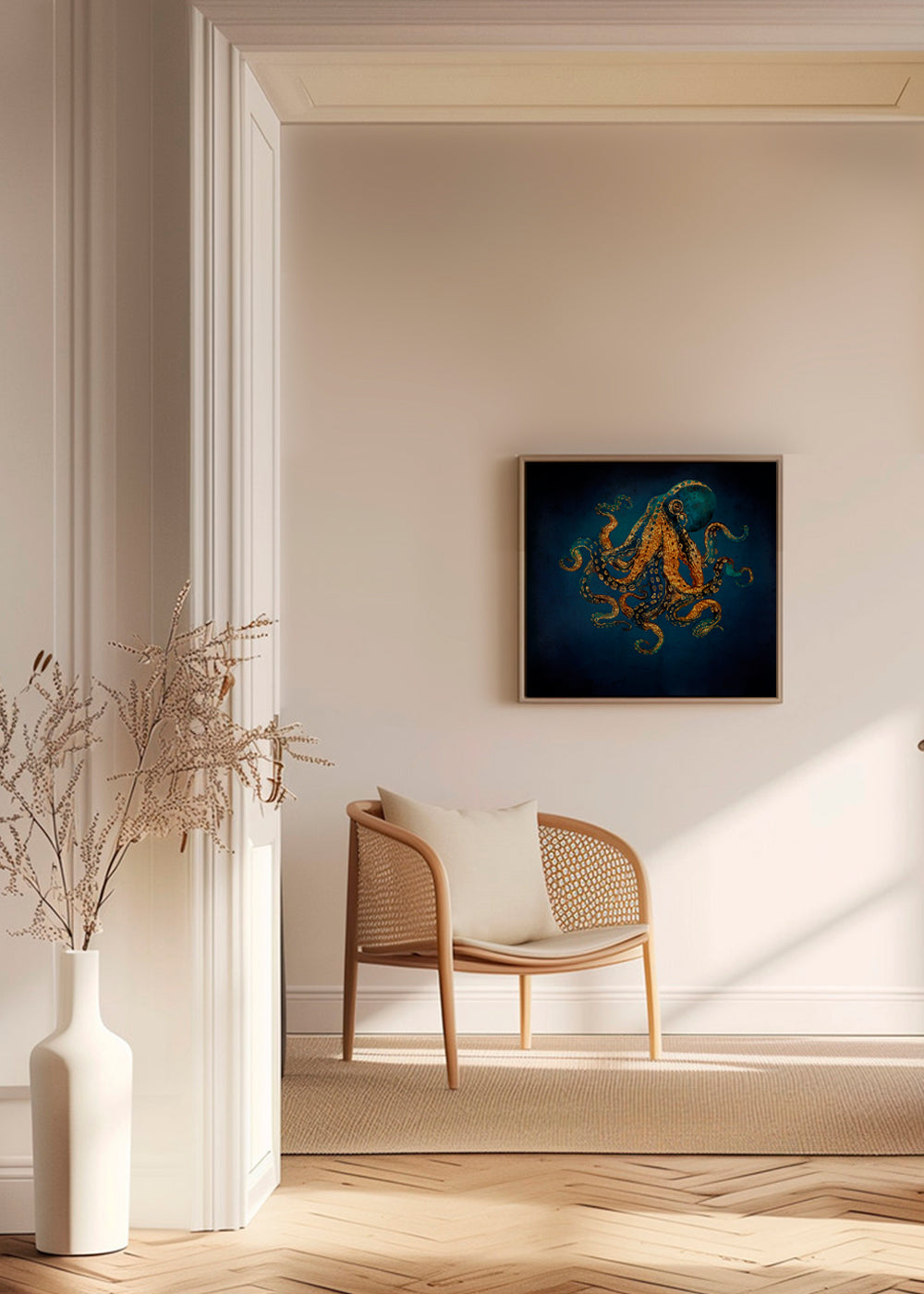 Una immagine dal nostro repertorio di quadri di animali, originale di SpaceFrog Designs, con dei tocchi blu. Un bel paesaggio ideale da abbinare ad altri quadri sulla natura. Dai nuova vita all'home decor della tua abitazione.