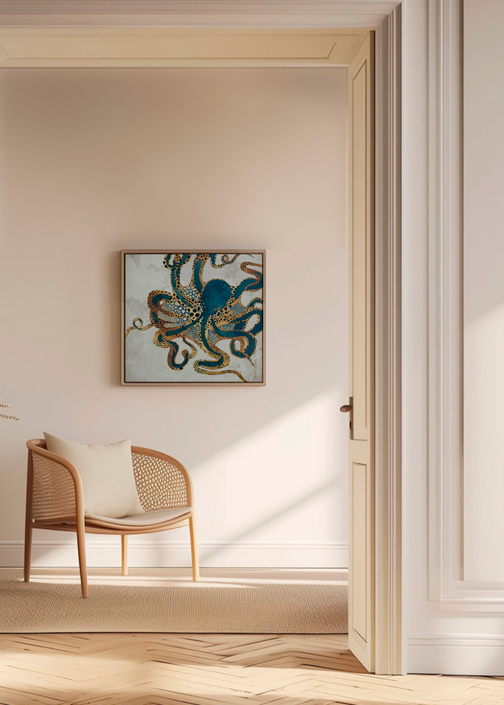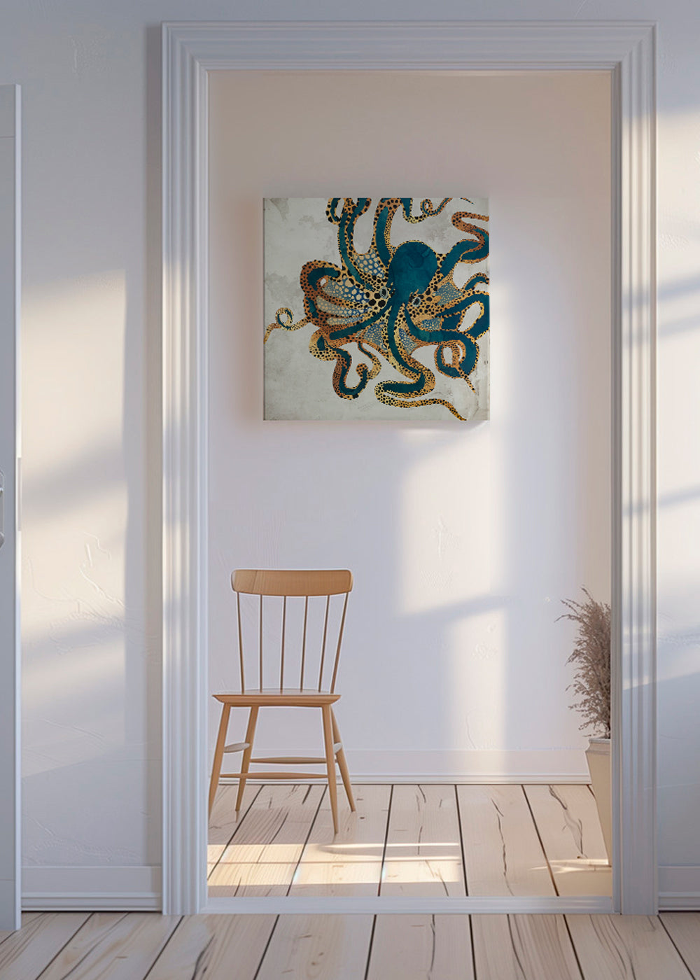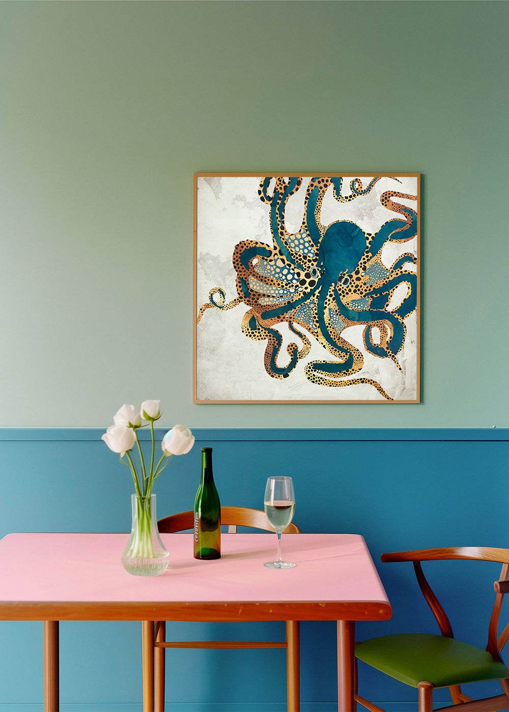 Bello poster dal nostro set di quadri di animali, dell'artista SpaceFrog Designs, sui toni blu. L'home decor ispirato ai paesaggi dà un tocco di freschezza a qualsiasi spazio. Decora la tua casa con un tocco artistico.