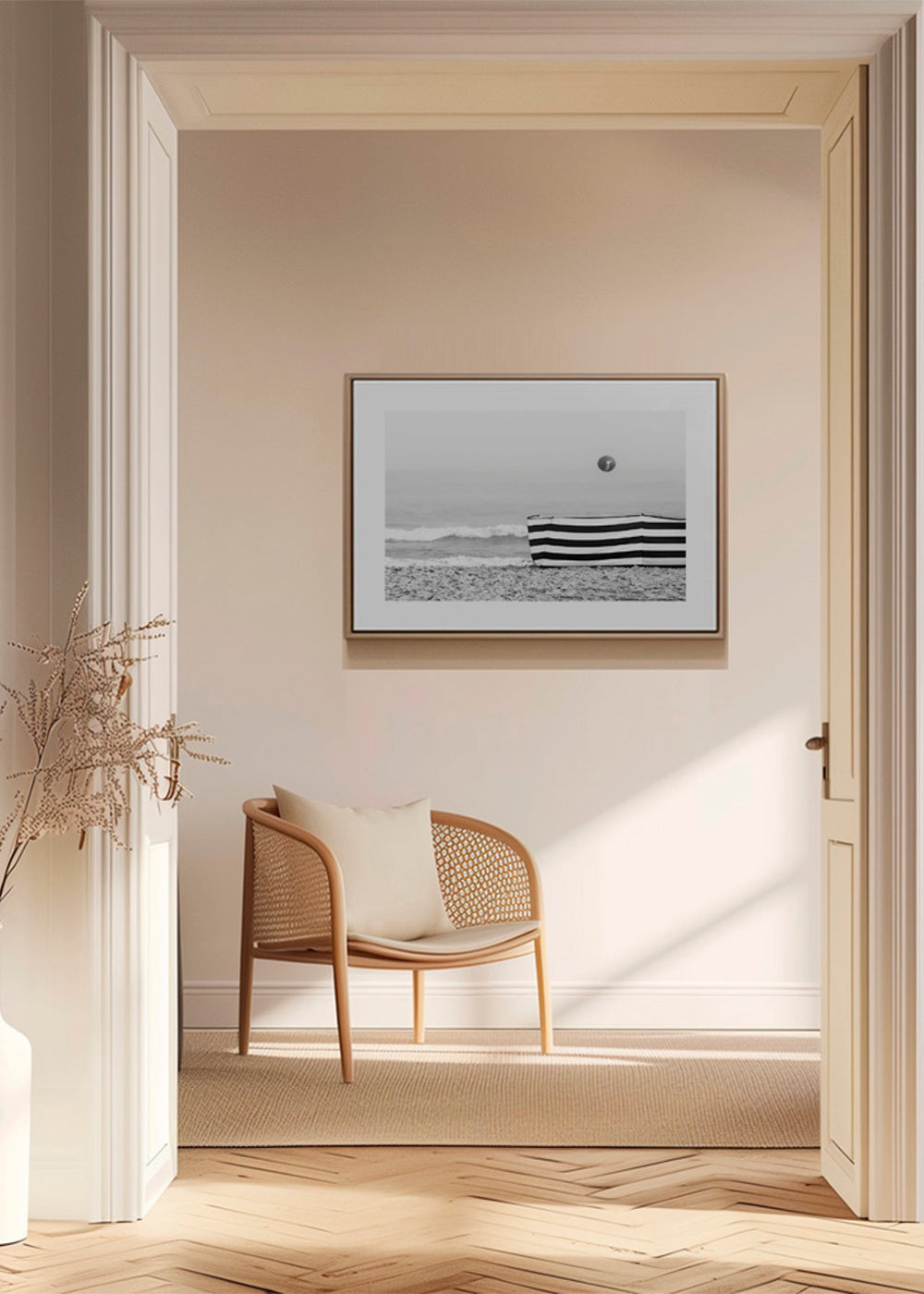 Una immagine dal nostro repertorio di quadri di spiagge e coste, ideata da 1x, dalle sfumature nero, e orientata in senso orizzontale. La tranquillità e il senso di libertà che trasmettono i quadri di paesaggi sono unici. Crea un angolo unico. L'immagine include un margine bianco che fa da contrasto all'opera e la valorizza.