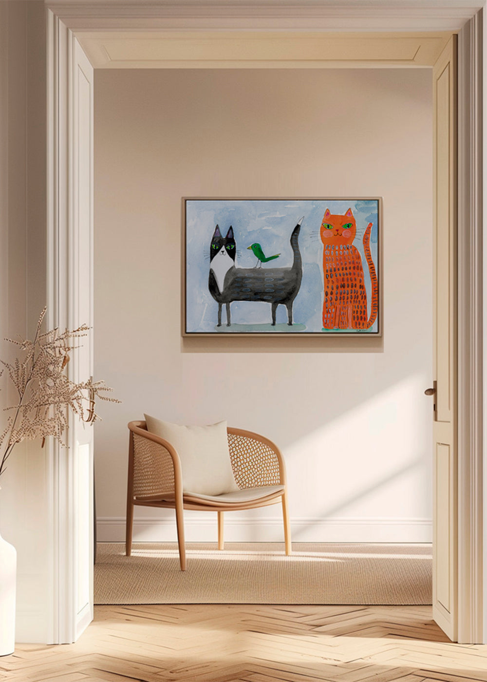 Bello design dal nostro set di quadri con gatti, originale di 1x, con tonalità di colori arance, e con orientamento orizzontale. Le stampe di animali ci consentono di mostrare il nostro lato più selvaggio attraverso la decorazione delle pareti. I dettagli fanno la differenza.