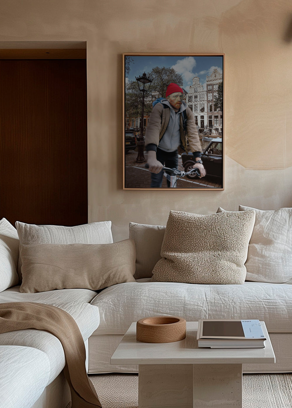 Bella stampa della serie di quadri con biciclette, creata da Dikhotomy, sui toni rossi, e orientata in senso verticale. I nostri quadri di carte e città sono ideali per chi ama l'architettura e gli ambienti urbani. Il quadro che quella parete sta aspettando.