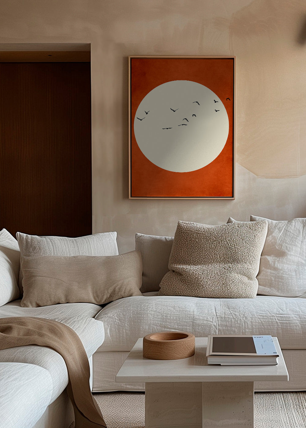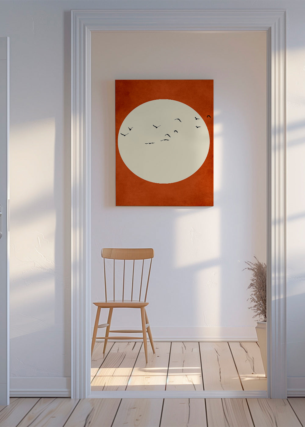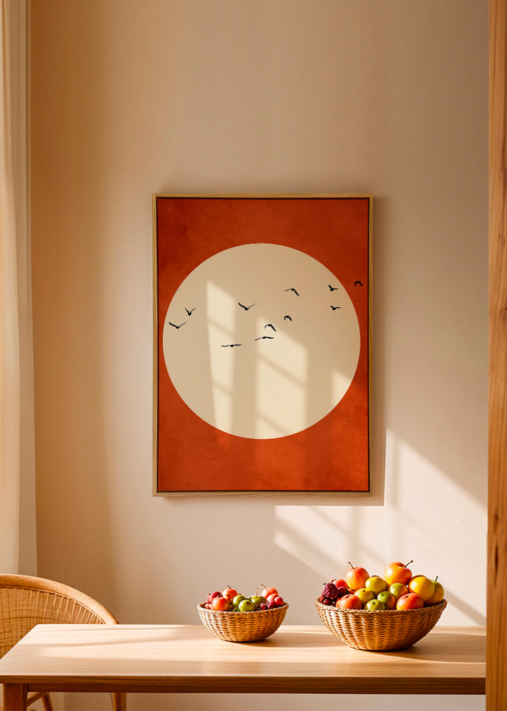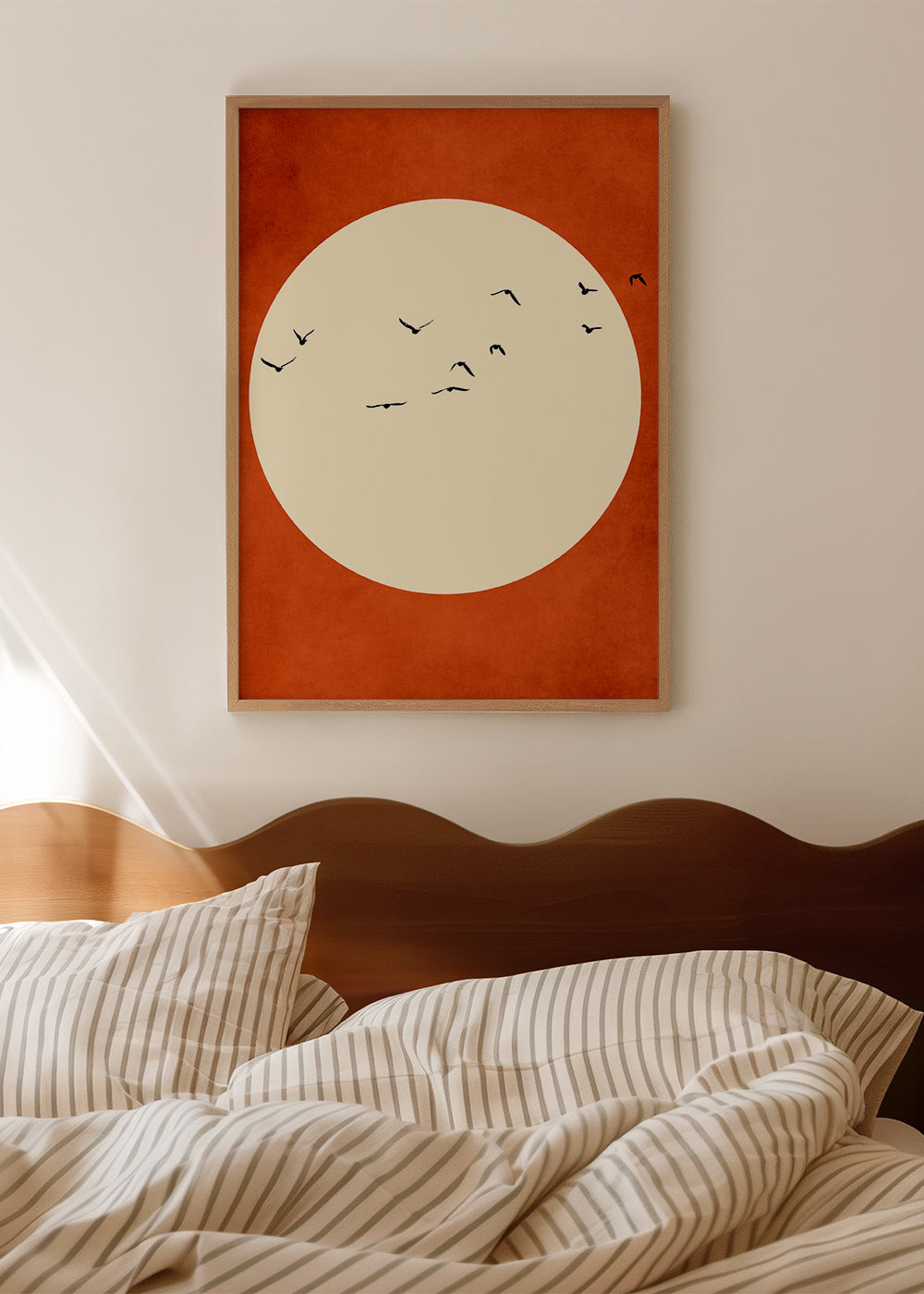 Un poster della serie di quadri con uccelli, dell'artista Kubistika, con pigmenti rossi, e nel formato verticale. Le stampe con illustrazioni sono ideali per personalizzare le pareti in modo creativo. Dai un tocco artistico al tuo home decor.