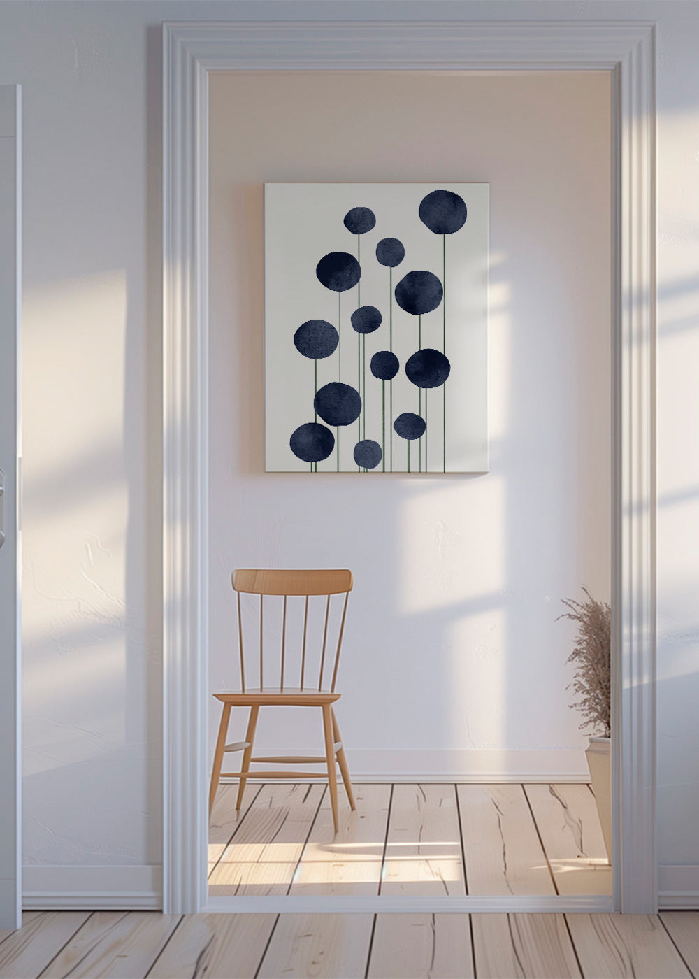 Bella pieza della collezione quadri geometrici, della collezione dell'artista KUBISTIKA, con tonalità di colori blu, e da mettere in posizione verticale. Quest'opera con motivi astratti è ideale da abbinare a quadri geometrici e di arte astratta. Eleganza ispirata all'arte.