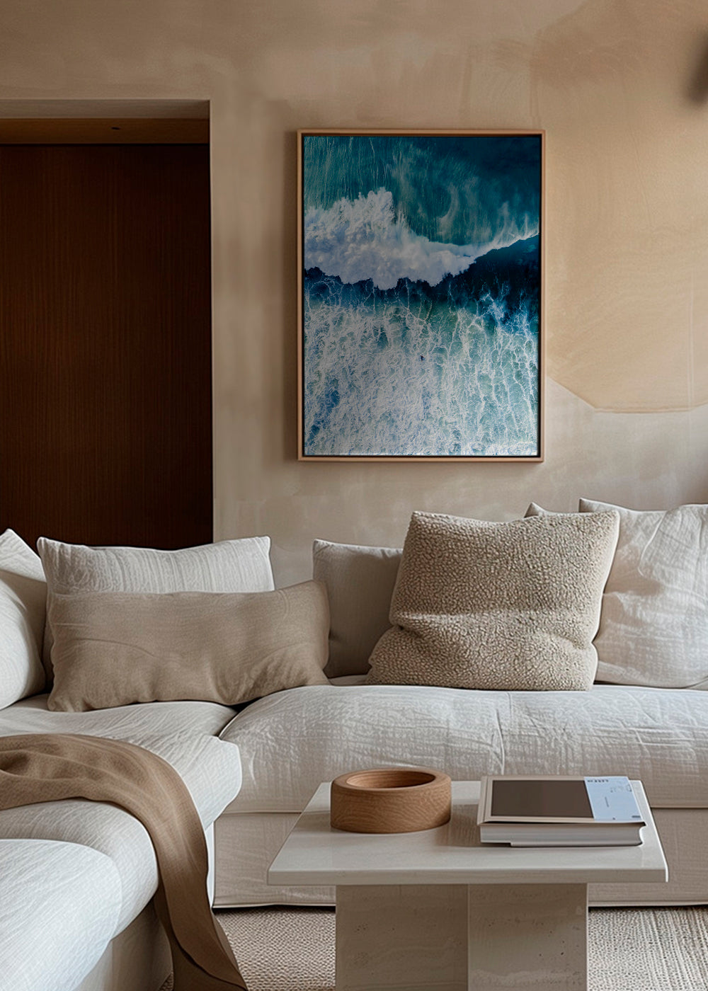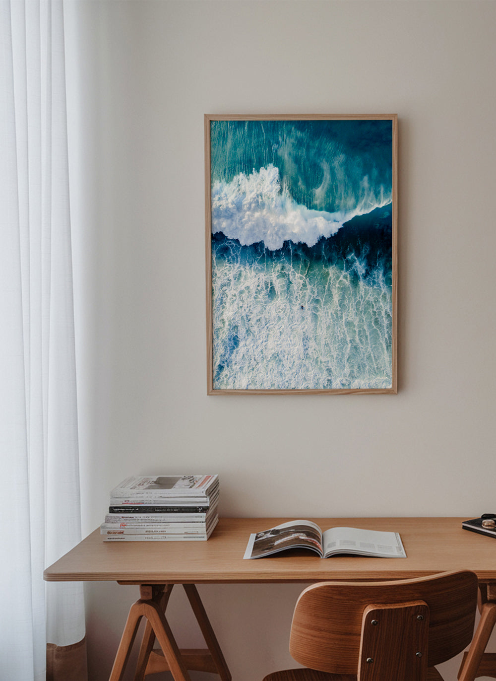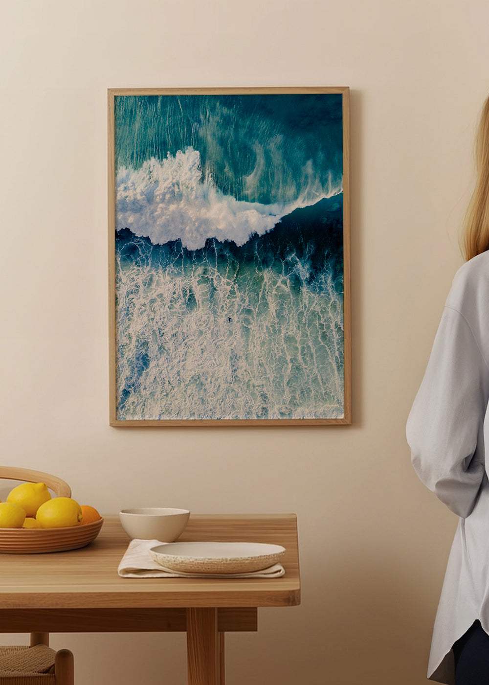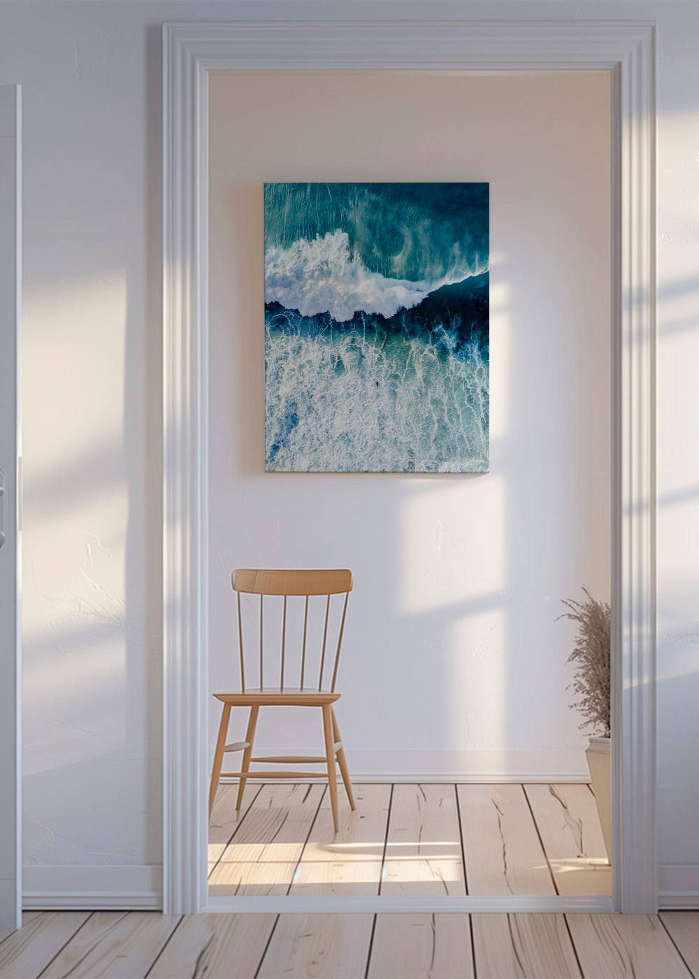 Un quadro ispirato alla collezione di quadri con mare, con tonalità di colori blu, e con posizione verticale. Con un design in stile nordico, quest'opera si abbina perfettamente a un home decor moderno. Le pareti decorate con i quadri sono il non plus ultra.