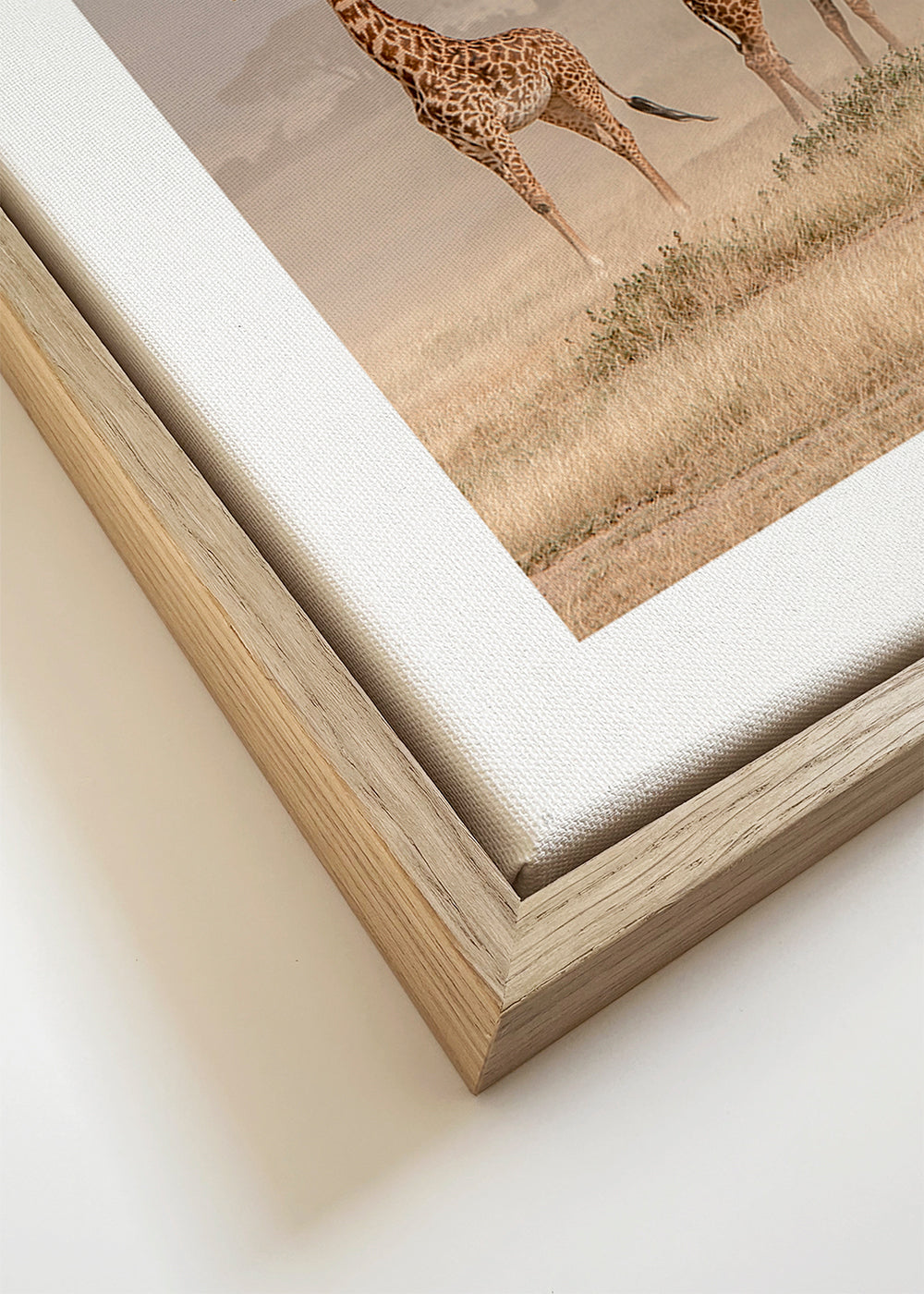 Per evitare rotture, le nostre cornici incorporano vetro acrilico al posto del vetro. Il vetro acrilico riproduce l'effetto del vetro, ma evita possibili danni durante il trasporto o il posizionamento della cornice.