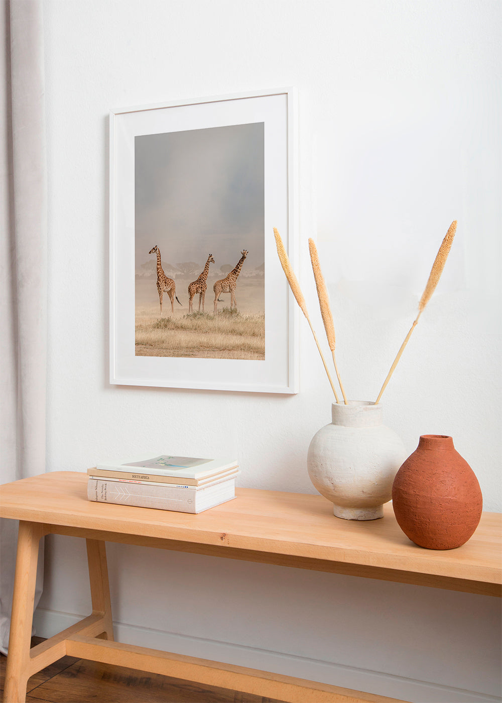 Sul nostro sito puoi trovare le seguenti dimensioni: 20x30cm, 30x40cm, 40x50cm, 50x50cm, 50x70cm, 60x90cm e 70x100cm. Queste dimensioni si riferiscono alle dimensioni dei poster. Se combini le nostre stampe con le nostre cornici, le dimensioni e il peso finali saranno i seguenti: